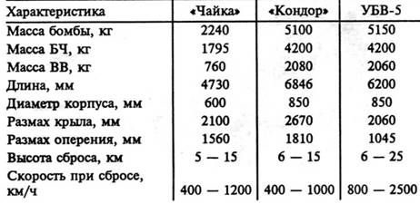 Однако в начале 50-х годов простое воспроизведете немецкой управляемой бомбы десятилетней давности представлялось нецелесообразным. Использование трофейной радиолинии, попавшей в руки как советских, так и американских специалистов, не обеспечивало достаточной устойчивости оружия к различным средствам радиоэлектронной борьбы. Возросшие скорости полета самолетов-носителей требовали соответствующих аэродинамических форм подвесного самолетного вооружения. Поэтому уже в 1950 г. Минсельхоз- маш обратился в правительство с предложением об организации разработки трех типов управляемых бомб – бронебойной УБ-1600Б и фугасных УБ-2000 и УБ-6000 (цифры в наименовании бомбы соответствовали массе в килограммах). Предусматривалось, что разработку управляемых бомб возглавит Александр Давидович Надирадзе. Еще в предвоенные годы Надирадзе успел вписать свое имя в историю отечественной авиации созданием первого шасси на воздушной подушке, а в дальнейшем перешел к работам в области ракетостроения. В начале 50-х годов под его руководством в КБ-2 велась разработка неуправляемой зенитной ракеты «Стриж». В качестве заместителей главного конструктора по управляемым бомбам предлагались В. И. Борисенко, В. И. Гоголев, В. И. Макаров и Ф. Ф. Рыженков. В результате рассмотрения этих предложений было принято правительственное Постановление от 15 октября 1951 г. № 3969-1815, предусматривавшее проведение опытно-конструкторских работ по двум типам управляемых авиабомб в фугасном снаряжении – УБ-2000Ф «Чайка» и УБ-5000Ф «Кондор» массой, как легко догадаться, соответственно 2 и 5 т. Кроме того, этим Постановлением предусматривались проработки по бронебойной бомбе УБ-2000Б, которые в дальнейшем были прекращены после выхода 27 ноября 1953 г. Постановления № 2856-1213, уточняющего задачи и сроки разработки управляемых авиабомб. По-видимому, отказ от разработки бронебойной авиабомбы был связан с наметившимся оснащением кораблей потенциального противника принципиально новыми высокоэффективными средствами ПВО. В условиях противодействия корабельных зенитных ракетных комплексов затруднился выход самолета на рубеж бомбометания на средних и больших высотах. Более эффективным противокорабельным оружием представлялись уже разработанные к тому времени первые советские авиационные противокорабельные ракеты КС («Комета»). Постановление от 27 ноября 1953 г. также уточнило состав разработчиков управляемых бомб. Вместо НИИ-885, скомпрометированного провалом работ по радиоэлектронному оборудованию для «Щуки», в качестве разработчика радиокомандной аппаратуры для управляемых бомб был привлечен НИИ-648. В качестве основного носителя для «Чайки» рассматривался Ил-28, для «Кондора» – Ту-16, а на первых порах – Ту-4.