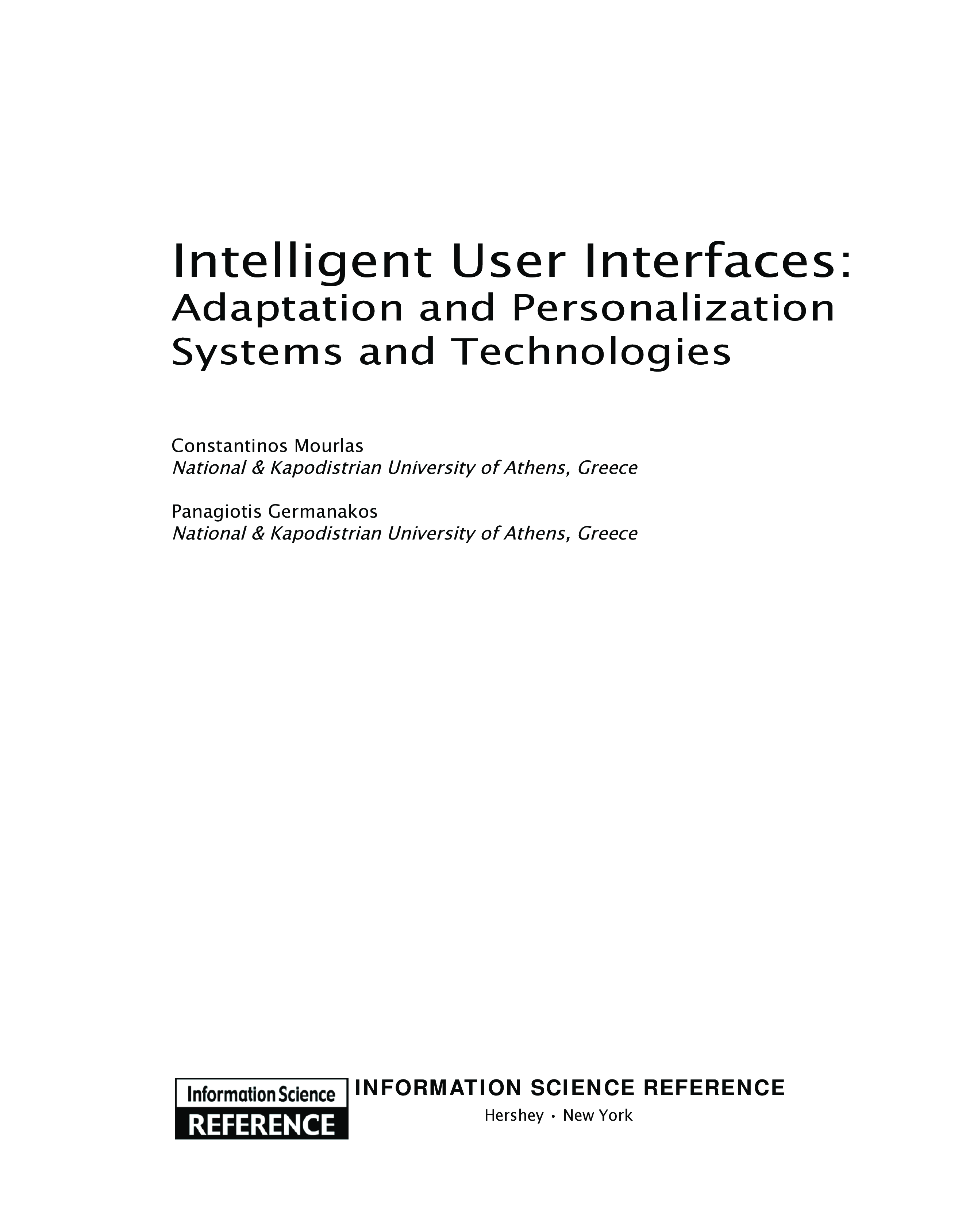 "INTELLIGENT USER INTERFACES: Adaptation and Personalization Systems and Technologies (Premier Reference Source)" - читать интересную книгу автора (Constantinos Mourlas, Panagiotis Germanakos, Constantinos Mourlas, Panagiotis...)