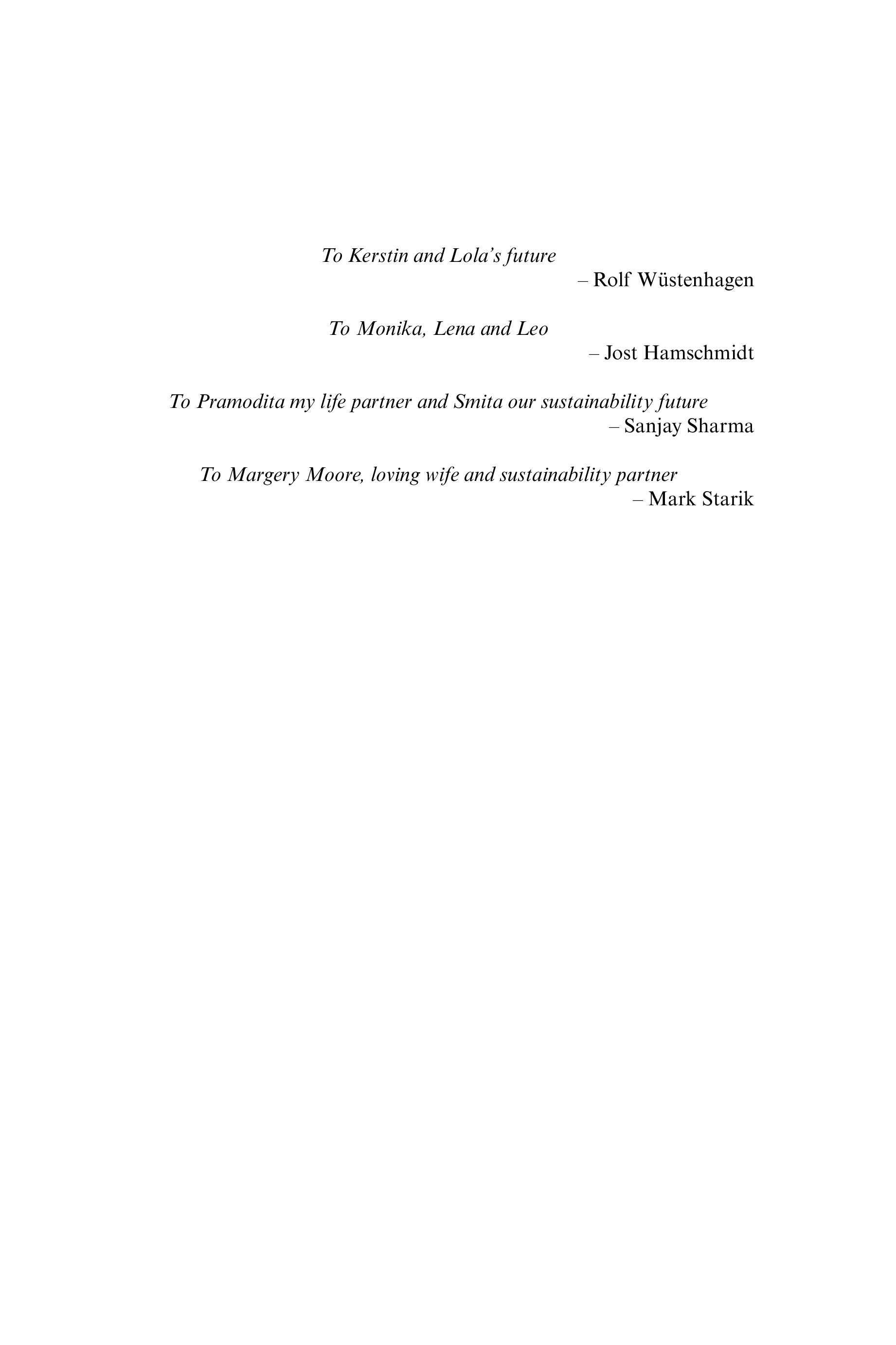 (Rolf Wustenhagen, Jost Hamschmidt, Sanjay Sharma, Mark Starik)
