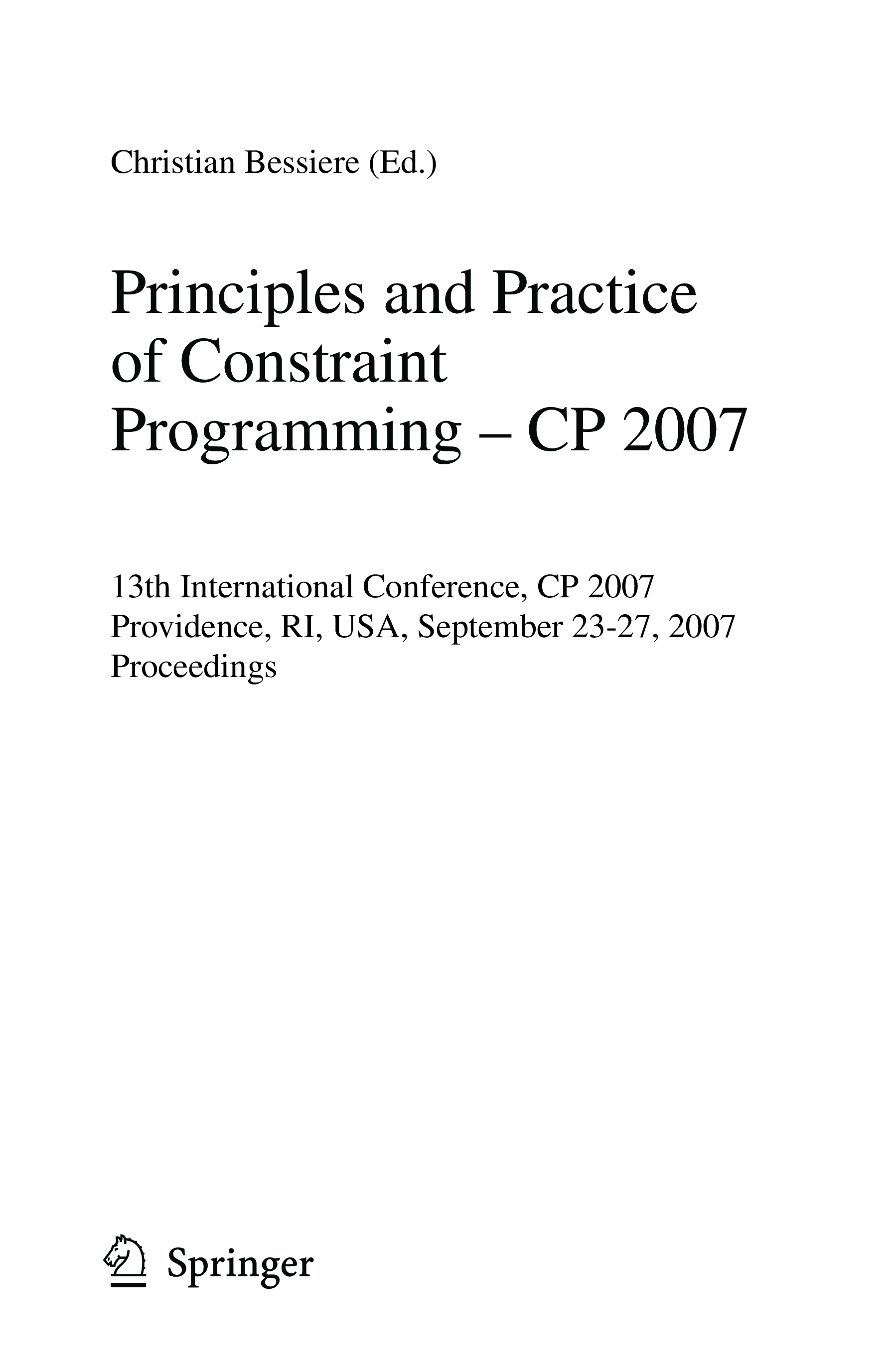 "Principles and Practice of Constraint Programming - CP 2007: 13th International Conference, CP 2007, Providence, RI, USA, September 25-29, 2007, Proceedings ... / Programming and Software Engineering)" - читать интересную книгу автора (Christian Bessiere)