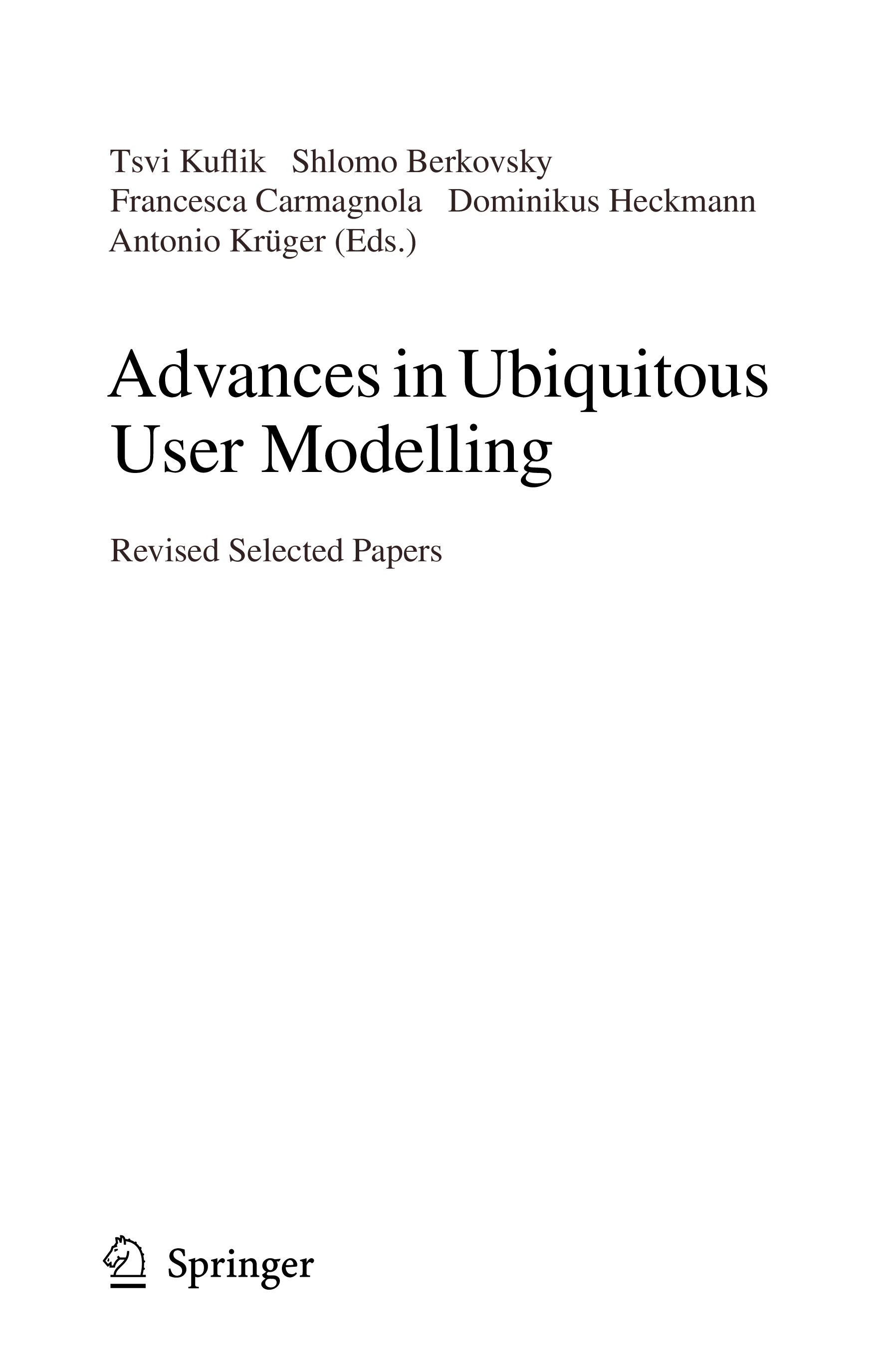 "Advances in Ubiquitous User Modelling: Revised Selected Papers (Lecture Notes in Computer Science / Information Systems and Applications, incl. Internet/Web, and HCI)" - читать интересную книгу автора (Tsvi Kuflik, Shlomo Berkovsky, Francesca Carmagnola, Dominikus Heckmann, Antonio...)