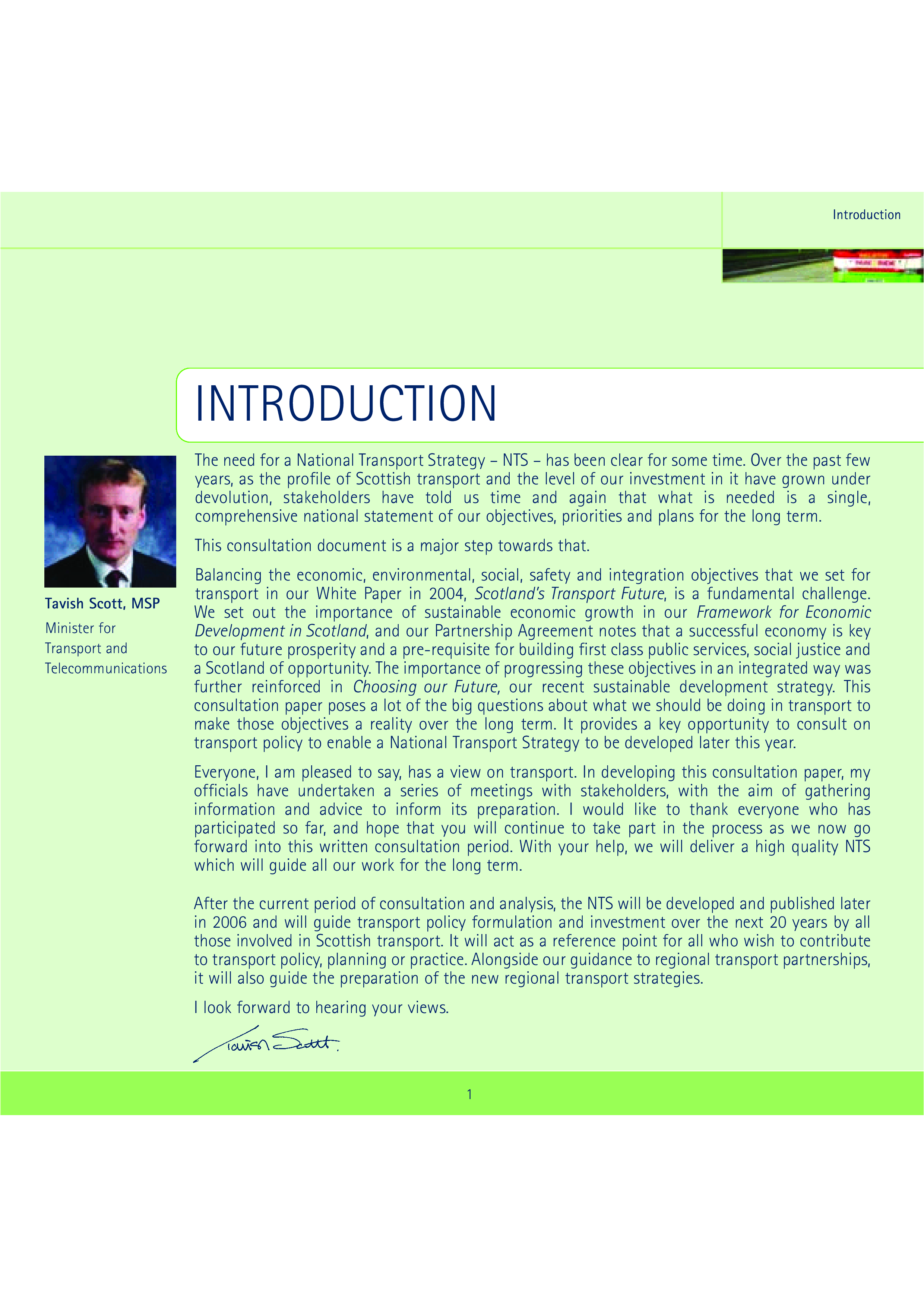 "Scotland's National Transport Strategy: A Consultation" - читать интересную книгу автора