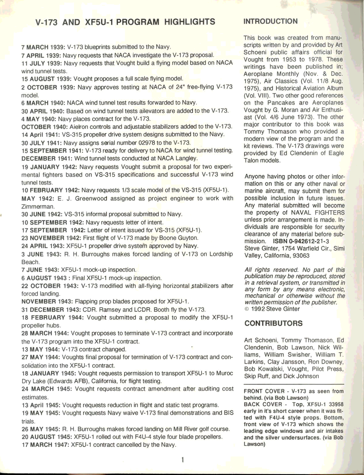 "Chance Vought V-173 & Xf5U-1 Flying Pancakes" - читать интересную книгу автора