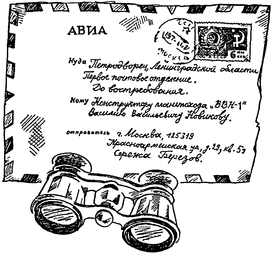 Здравствуй, Серёжа! Прочитал я «Адрес отправителя: Атлантида…» и «Наследство старого капитана». Признаться, не без интереса. Но не могу понять, как они оказались в сундучке, а сундучок в дупле. И кто же вёл вахтенный журнал Клуба знаменитых капитанов? Я уверен только в одном — капитаны никогда не сходили со страниц!.. Ты меня не уговаривай… Я поделился своими сомнениями с тётей Симой, Серафимой Александровной. И знаешь — она прочитала две клеёнчатые тетради и заметила, что там много правдивого. Она даже думает, что мог существовать и капитан дальнего плавания Ермаков, а Братское море — это уже всем известный факт… Тётя Сима — научный сотрудник, криминалист (если не знаешь, что это такое — посмотри в словаре на букву «К»). Она ещё больше меня была взволнована вашей загадочной находкой на берегу Озера Чаек… Ты знаешь, у неё на счёту более ста запутанных дел, которые она раскрыла, а тут стала в тупик. Жаль что тетрадей только три!.. Завтра на пляже в условиях горячего песчаного грунта состоится первое испытание моего планетохода «ВВН-1». Жму твою лапу, дружище. Привет. Василий