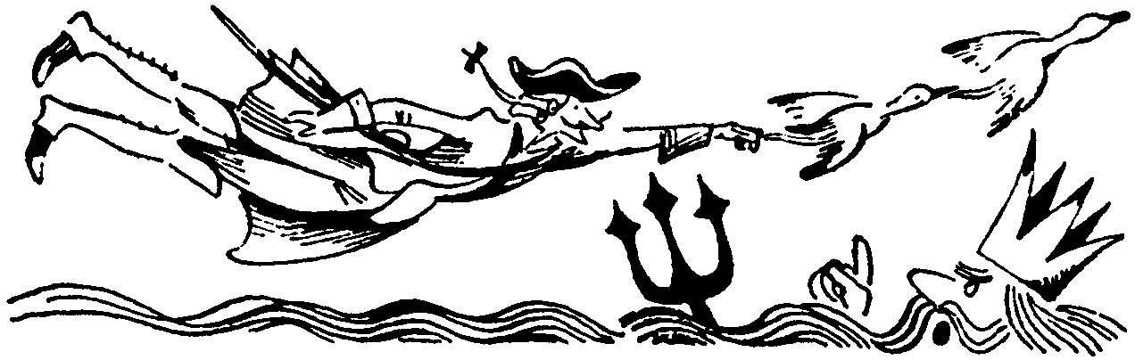 — Тогда молчите! Не перебивайте! — крикнул увлечённый Мюнхаузен. Его глаза засверкали, как два драгоценных камня в лучах солнца. Сейчас уже его никто бы не удержал. Речь его полилась бурным потоком, заливая Тартарена. Дикие утки уносили барона под самые разные широты. — Но мне не повезло. Вместо уютной кают-компании я попал в циклон! С ураганной скоростью совершаю… я успел сосчитать… восемнадцать витков! Вокруг экватора! Гляжу в океан. Нептун грозит мне трезубцем. Очаровательная морская наяда приглашает выкупаться в солёной воде. Посылаю воздушный поцелуй! Но циклон заносит меня к Полярному кругу. Льды! Белые медведи! Королевские пингвины! Четыре витка над снежной пустыней превращают вашего покорного слугу в ледяную сосульку! Если угодно — в «эскимо»! Но антициклон увлекает моих уток в тропики. Оттаиваю… Иду на посадку. Иду? Не то слово! Падаю камнем! Ещё мгновенье… и — катастрофа! Конец! Ни завещания, ни мемуаров — ничего! Спасение приносит внезапно налетевший смерч. Он закручивает меня вместе с утками до самых облаков! И выше! Выше! Чувствую, что теряю весомость. Достаю безмен — взвешиваюсь… И — о, ужас! Вместо шестидесяти двух килограммов, я уже вешу только сорок четыре! Сорок! Тридцать два! Шестнадцать килограммов! Восемь! Пять! Три килограмма семьсот граммов! Когда я родился, я весил столько же — три семьсот. Я инстинктивно закричал: «Ма-ама!..» А стрелки весов тем временем скакнули вниз. Два килограмма. Один! «Что же будет дальше?» — с ужасом подумал я. Вот уже полкило! Сто грамм! Ну, разве это вес для Карла! Фридриха! Иеронима! Мюнхаузена! Четыре грамма! И, наконец, ни одного!.. Начинаю парить среди стаи уток в высших слоях атмосферы. А мозг лихорадочно работает, работает: неужели Мюнхаузен будет вечно носиться вокруг Земли? Станет спутником… небесным телом и будет нанесён на карту звёздного неба! В этот момент со мной сталкивается метеорит. От страшного сотрясения я меняю орбиту и лечу на Землю. Пробиваю перистые облака… кучевые. А затем, воспользовавшись сильным воздушным течением, планирую, раскрыв длинные фалды моего камзола, и влетаю в раскрытое окно магазина подписных изданий на Кузнецком мосту. Быстро нахожу на книжных полках первый томик Диккенса. Одалживаю у добрейшего мистера Пиквика почтовый дилижанс и мчусь в нашу библиотеку. На всякий случай — опять достаю безмен — взвешиваюсь. Увы! Всего пятьдесят килограммов. Я потерял двенадцать кило за несколько минут моего необыкновенного путешествия. Но зато приобрёл особую весомость поборника истины!. — Ну, что ж… у каждого барона своя фантазия, — заметил Тартарен, не скрывая иронии. — Что вы хотели этим сказать? — сухо спросил Мюнхаузен. — Да, ничего… просто я вспомнил французскую поговорку. — Нет, не просто вы вспомнили эту поговорку. Я настаиваю, чтобы вы говорили со мной без намёков. — Если вы так настаиваете, я вам скажу всю правду. — Да… интересно что скажете? — высокомерно спросил Мюнхаузен, постукивая каблуком. Тартарен с наивной откровенностью ребёнка, добродушно улыбаясь, неожиданно выпалил: — Барон, вы лжёте. — Это что: цитата из «Скупого рыцаря»? — Нет, это цитата из самого Тартарена! — Защищайтесь! — вспыхнул Мюнхаузен. — Дуэль?! Я к вашим услугам, милостивый государь. Но только на шпагах, на шпагах, а не на шпильках! Благоразумие покинуло обоих. Мюнхаузен не пе