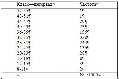 "Дифференциальная психология. Индивидуальные и групповые различия в поведении" - читать интересную книгу автора (Анастази Анна)Глава 2 РАСПРЕДЕЛЕНИЕ ИНДИВИДУАЛЬНЫХ РАЗЛИЧИЙВ повседневной речи часто можно слышать, что кто-то «обладает» какой-то способностью, а кто-то — нет. Джонс умеет писать, Смит — нет. У Елены есть талант к музыке, у Дорис — к рисованию, у Дика — к математике, у Сэма — к руководству. Такие характеристики основаны на произвольных утверждениях, продиктованных практическими потребностями. Чтобы избрать, например, музыку в качестве своей профессии или просто в качестве серьезного увлечения, индивид должен обладать минимальным музыкальным талантом. Если степень его музыкальных способностей находится ниже этого минимума, его не считают «музыкальной личностью». Для нас стало привычным, описывая индивида, говорить о его выдающихся способностях и дарованиях и просто-напросто игнорировать те его качества, в которых он показывает средние результаты. Поэтому мы называем м-ра Блэка творчески мыслящим человеком, м-с Вентворт — хорошей собеседницей, а м-ра До человеком спортивным. Мы обычно не отзываемся о м-ре Блэке как о посредственном спортсмене, о м-с Вентворт как о не очень творческой личности и о м-ре До как о малоинтересном собеседнике! Каждый день мы сталкиваемся с резкими качественными различиями людей. Однако при ближайшем рассмотрении оказывается, что все индивиды обладают всеми качествами и что по степени обладания каждым конкретным качеством их можно распределить вдоль длинной шкалы. Иными словами, люди не укладываются в четко разграниченные категории. Различия между людьми — вопрос степени. В этом смысле можно сказать, что индивидуальные различия носят скорее количественный, чем качественный характер. Можно возразить, что существует по крайней мере несколько характеристик, которыми человек либо обладает, либо не обладает, и что в этом отношении мы Поскольку индивидуальные различия в обозначенном выше смысле носят количественный характер, возникает вопрос, как различные степени каждого качества распределяются среди людей. Происходит ли распределение индивидов равномерно по всему ряду этих степеней, или они как бы группируются вокруг одного или нескольких пунктов? Какова относительная частота проявления различных степеней? На эти вопросы лучше всего отвечать, анализируя частотные распределения и графики частоты. Подобно другим методам статистики, частотное распределение представляет собой суммирование и обработку количественных данных, которые производятся для понимания общей картины и выявления существенных тенденций. Результаты тестирования или любые другие серии измерений группируются в классы, и все случаи, лежащие внутри каждого класса, заносятся в таблицу. Таблица 1 представляет собой пример такого частотного распределения. В ней приводятся результаты тестирования 1000 студентов колледжа на умение применять код, в котором необходимо было один набор бессмысленных слогов заменить на другой. Данные, показывающие количество правильно замененных за две минуты слогов, находились в интервале от 8 до 52. Они были сгруппированы по интервалам (по 4 пункта в каждом), начиная с 52–55 на верхней точке распределения и заканчивая 8—11 на нижней. Колонка под названием «частота» в таблице 1 показыв