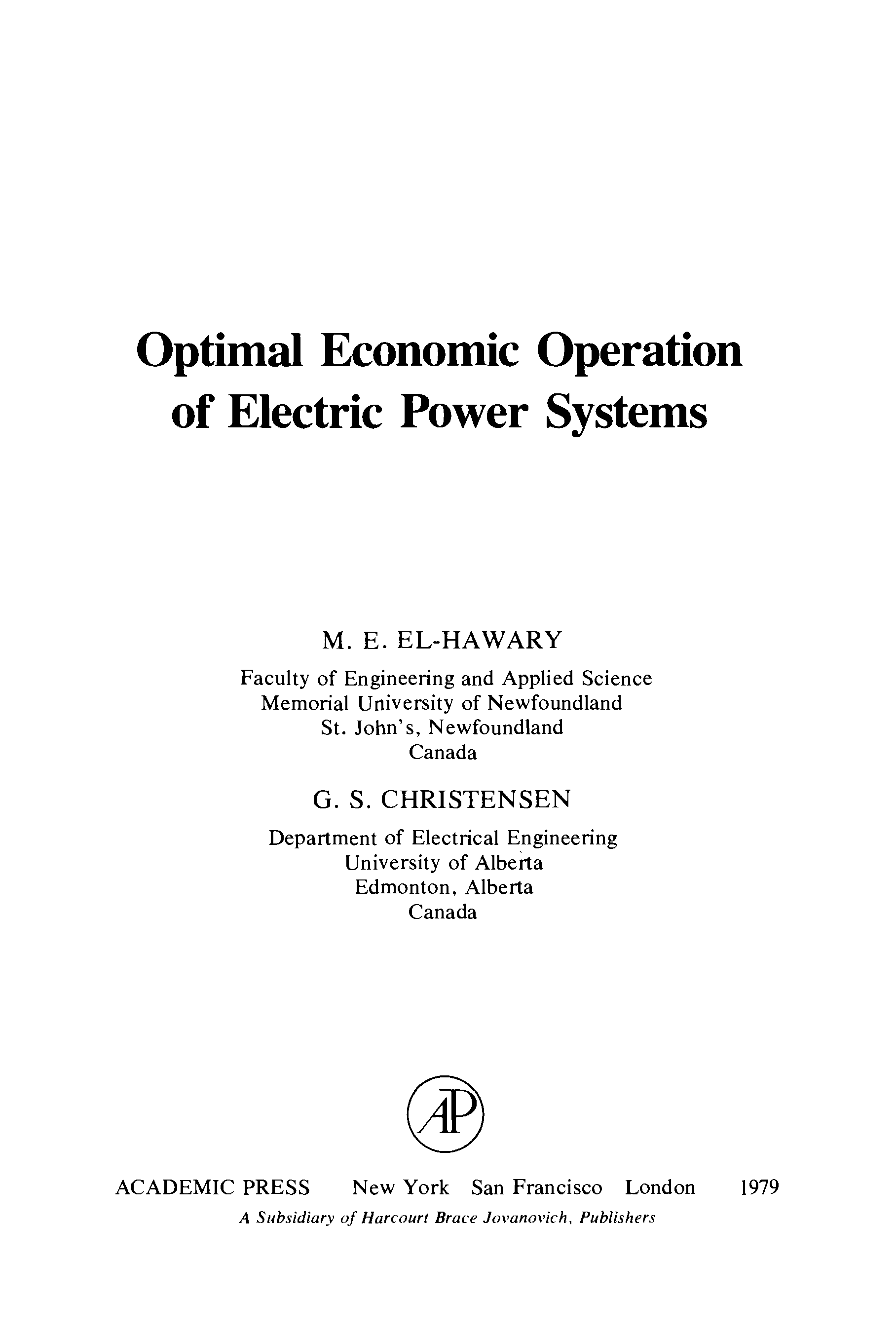 "Optimal economic operation of electric power systems" - читать интересную книгу автора (Christensen)