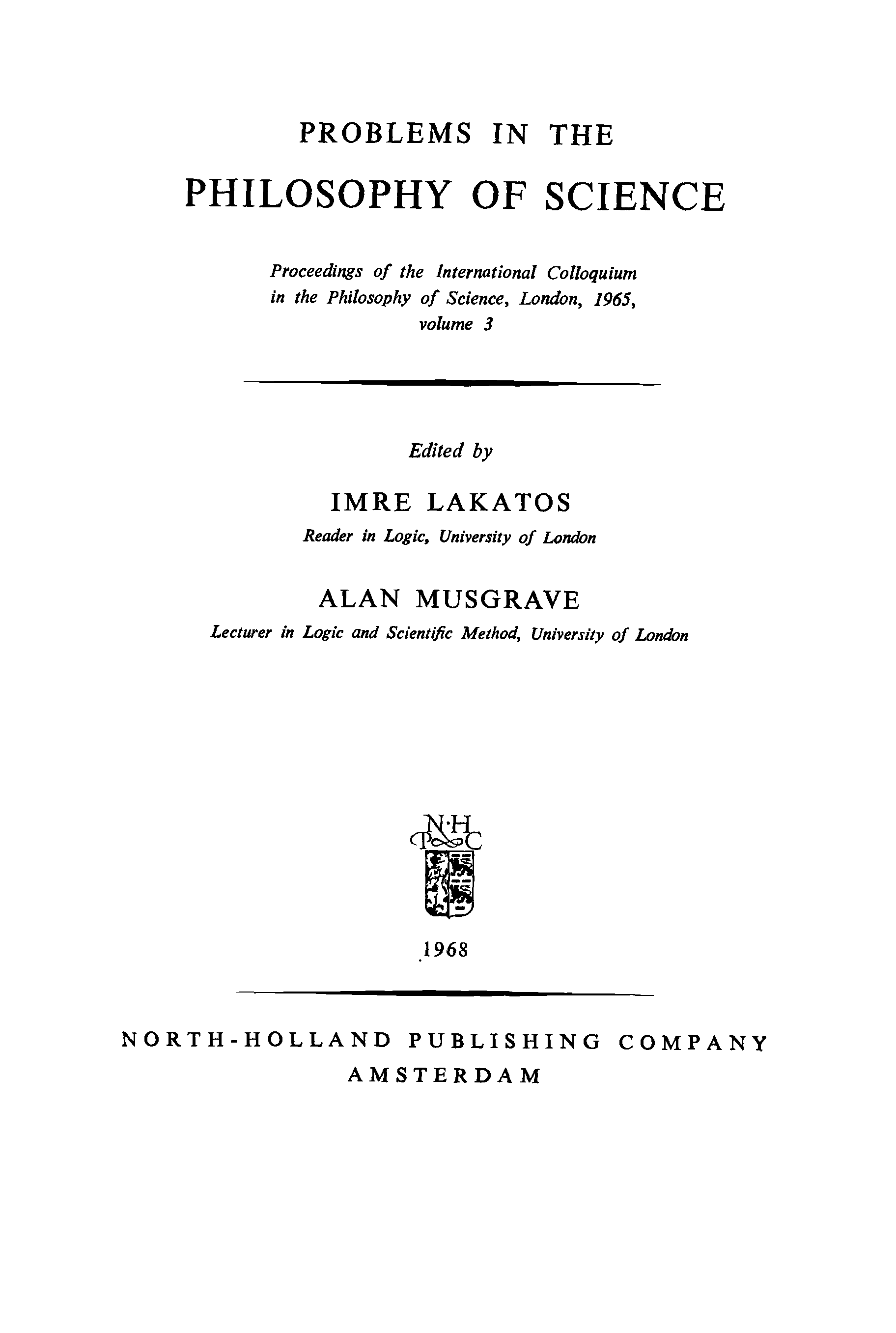 "Problems in the philosophy of science: Proceedings London, 1965" - читать интересную книгу автора