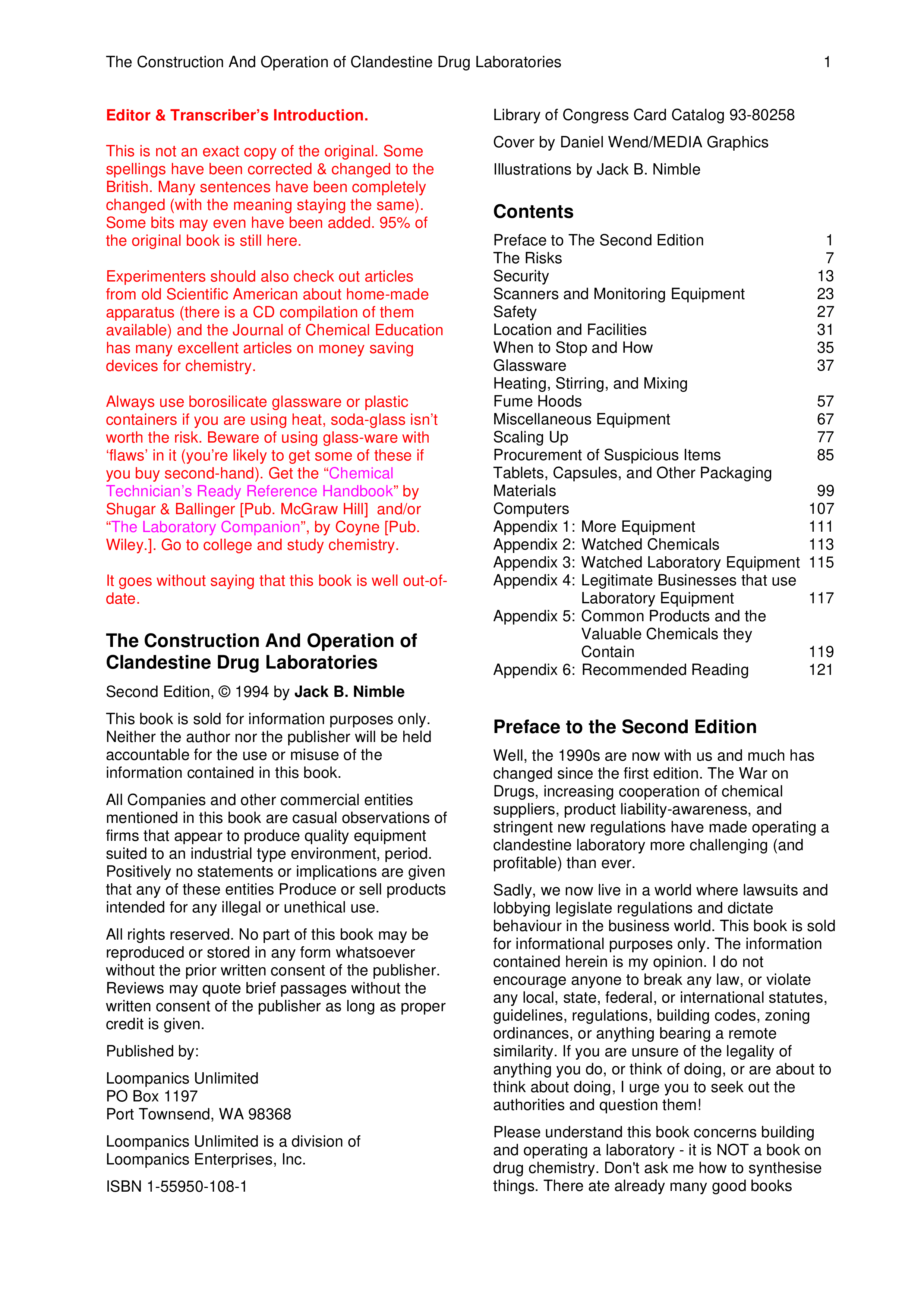 "The Construction and Operation of Clandestine Drug Laboratories (2nd ed: 85178)" - читать интересную книгу автора