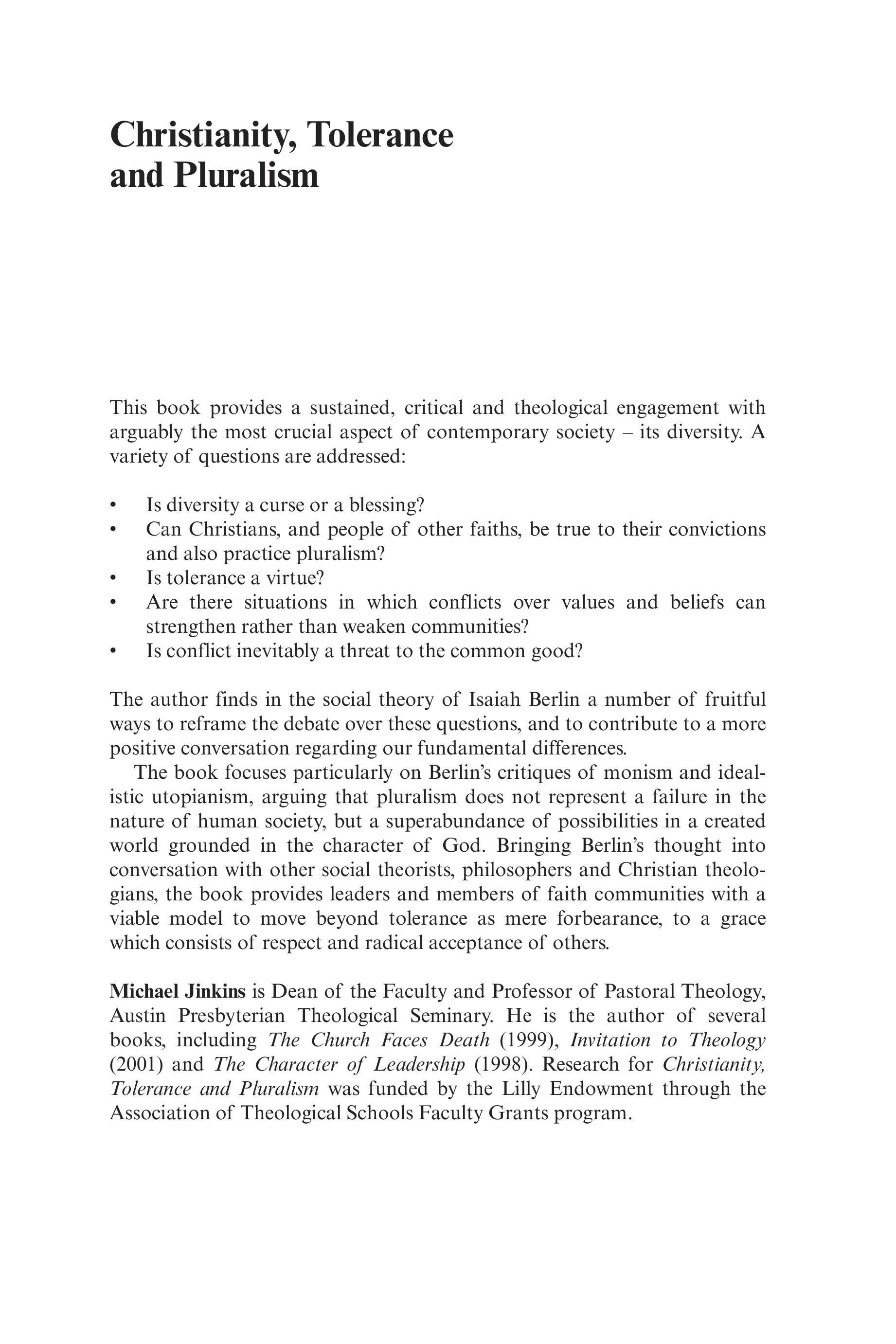"Christianity, Tolerance and Pluralism: A Theological Engagement with Isaiah Berlin's Social Theory (Routledge Studies in Religion)" - читать интересную книгу автора