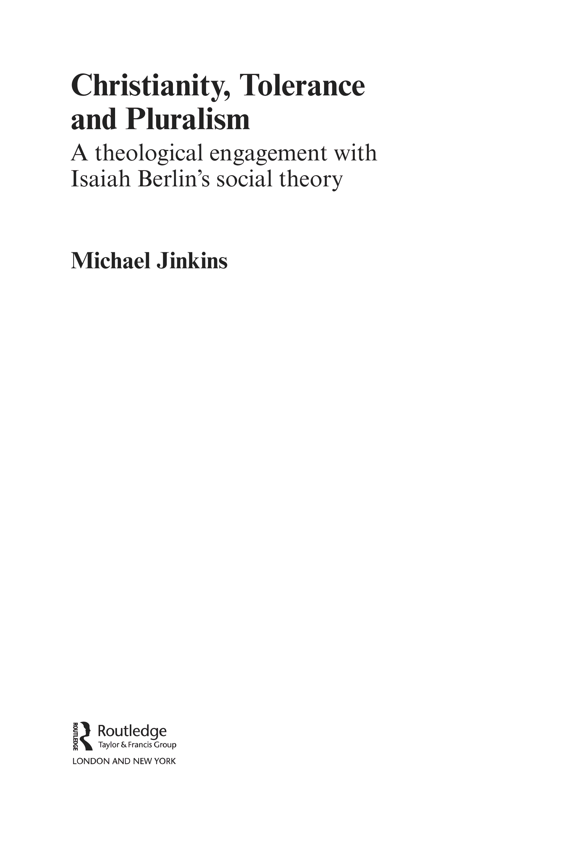 "Christianity, Tolerance and Pluralism: A Theological Engagement with Isaiah Berlin's Social Theory (Routledge Studies in Religion)" - читать интересную книгу автора