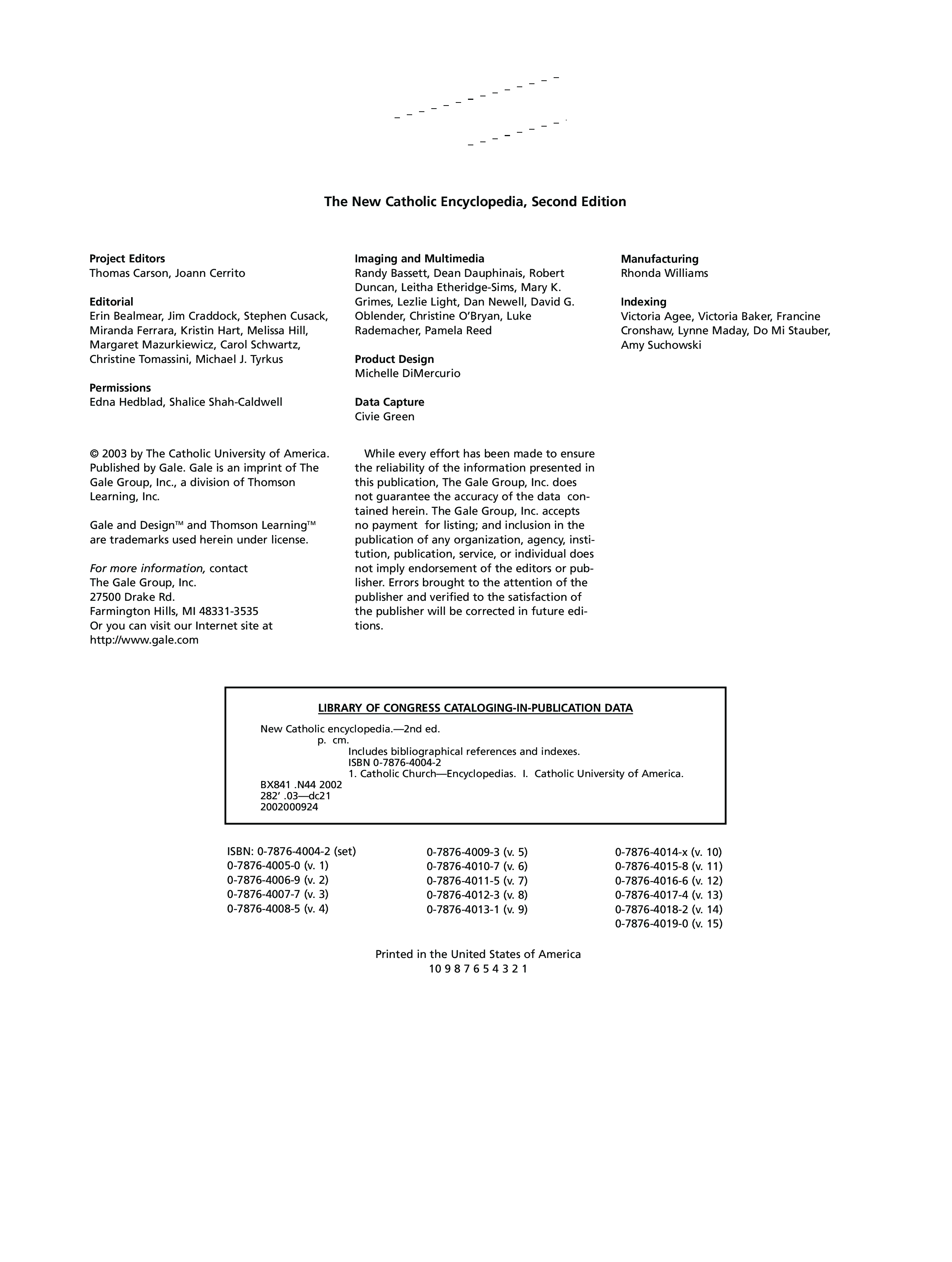 "The New Catholic Encyclopedia, 2nd Edition (15 Volume Set)" - читать интересную книгу автора