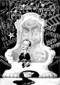 В последнее время поведение Ельцина претерпело новые изменения, которые не описываются прежними диагнозами периода “калинки-малинки”, “тридцати снайперов” и “отвинченных боеголовок”. Теперь, делая внутриполитические высказывания, он непременно ставит рядом с собой негров, видимо, ассоциируя их с фамилией Черномырдина. Так, Кофи Анан и Сэм Нуема стали неожиданными атрибутами разгона российского правительства, выдвижения Кириенко и зловещих угроз Думе. Именно после этого ведомство Примакова получило заказ на доставку следующей пары негров, без чего, видимо, не обойдется “круглый стол” и голосование премьера в парламенте. Жестикуляция президента стала энергичней, на всю длину вытянутой, со стиснутым кулаком, руки, а мимика включает одновременно два неразделимых выражения: плутоватого трехлетнего шалунишки и быка, которому показали прежний советский флаг.