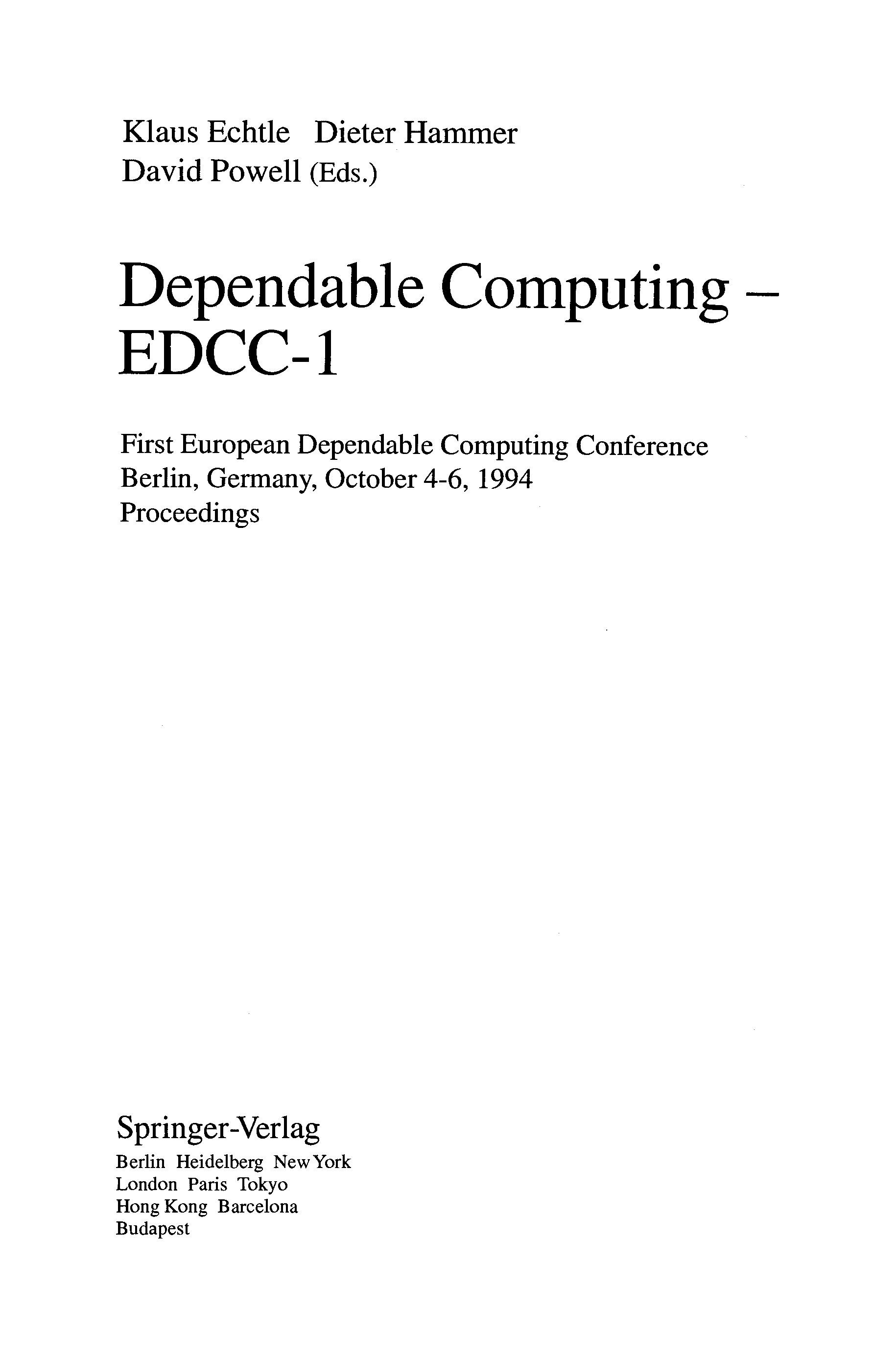 "Dependable Computing - EDCC-1: First European Dependable Computing Conference, Berlin, Germany, October 4-6, 1994. Proceedings " - читать интересную книгу автора (European Dependable Computing Conference, Klaus Echtle, Dieter Hammer, David...)