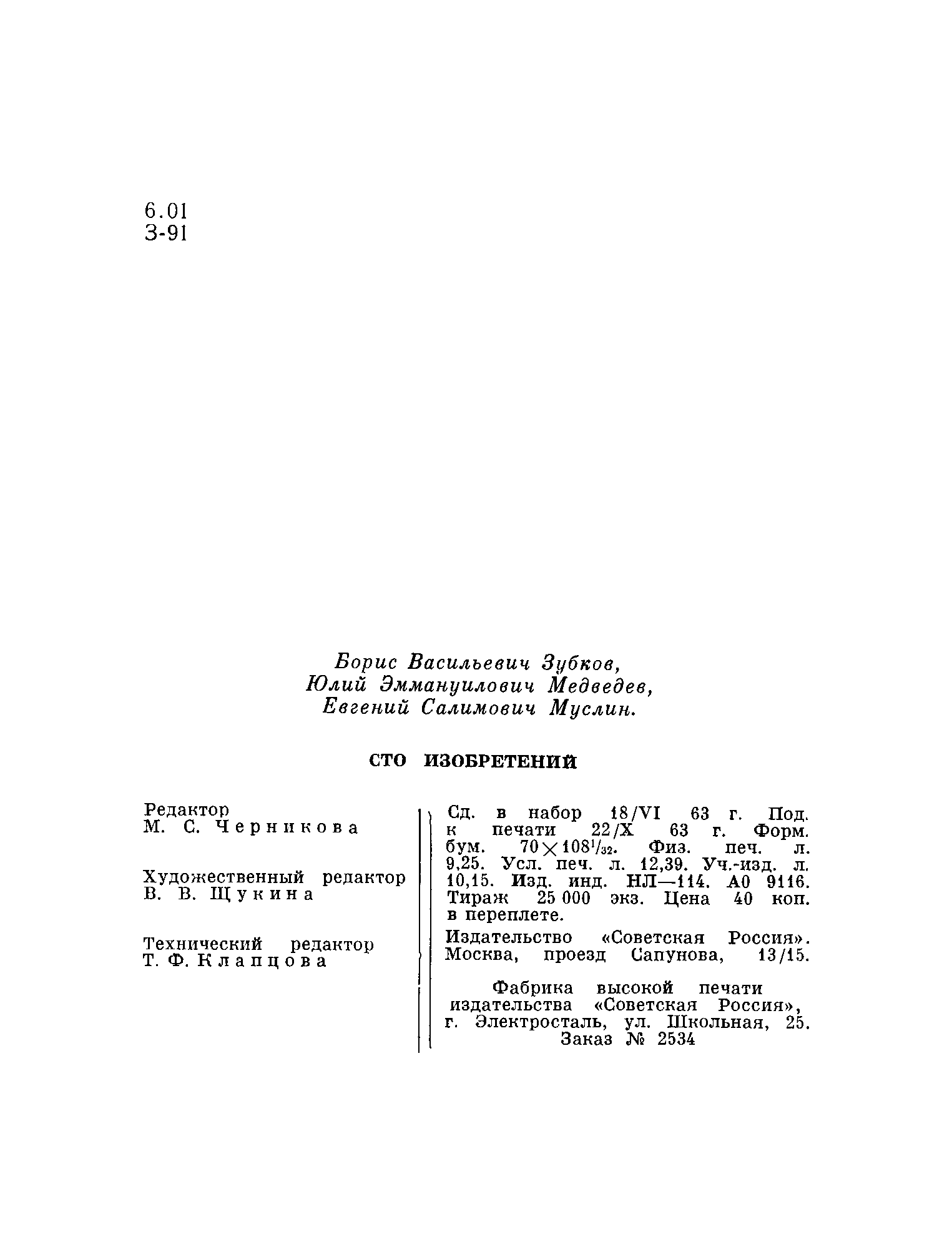 "Сто изобретений. " - читать интересную книгу автора (Авторы: Б.В.Зубков, Ю.Э.Медведев, Е.С.Муслин....)