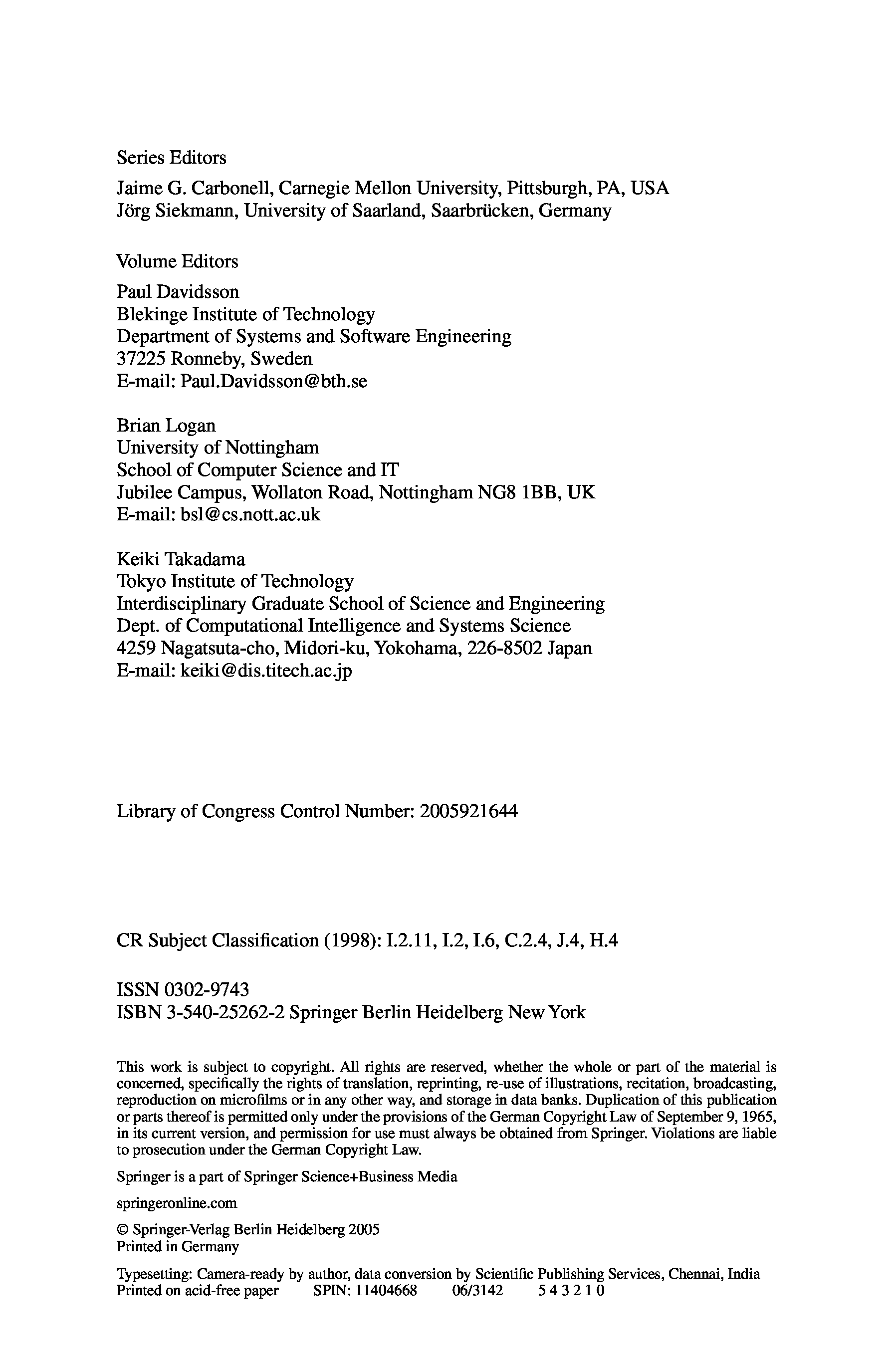 "Multi-Agent and Multi-Agent-Based Simulation: Joint Workshop MABS 2004" - читать интересную книгу автора (Paul Davidsson, Brian Logan, Keiki Takadama)