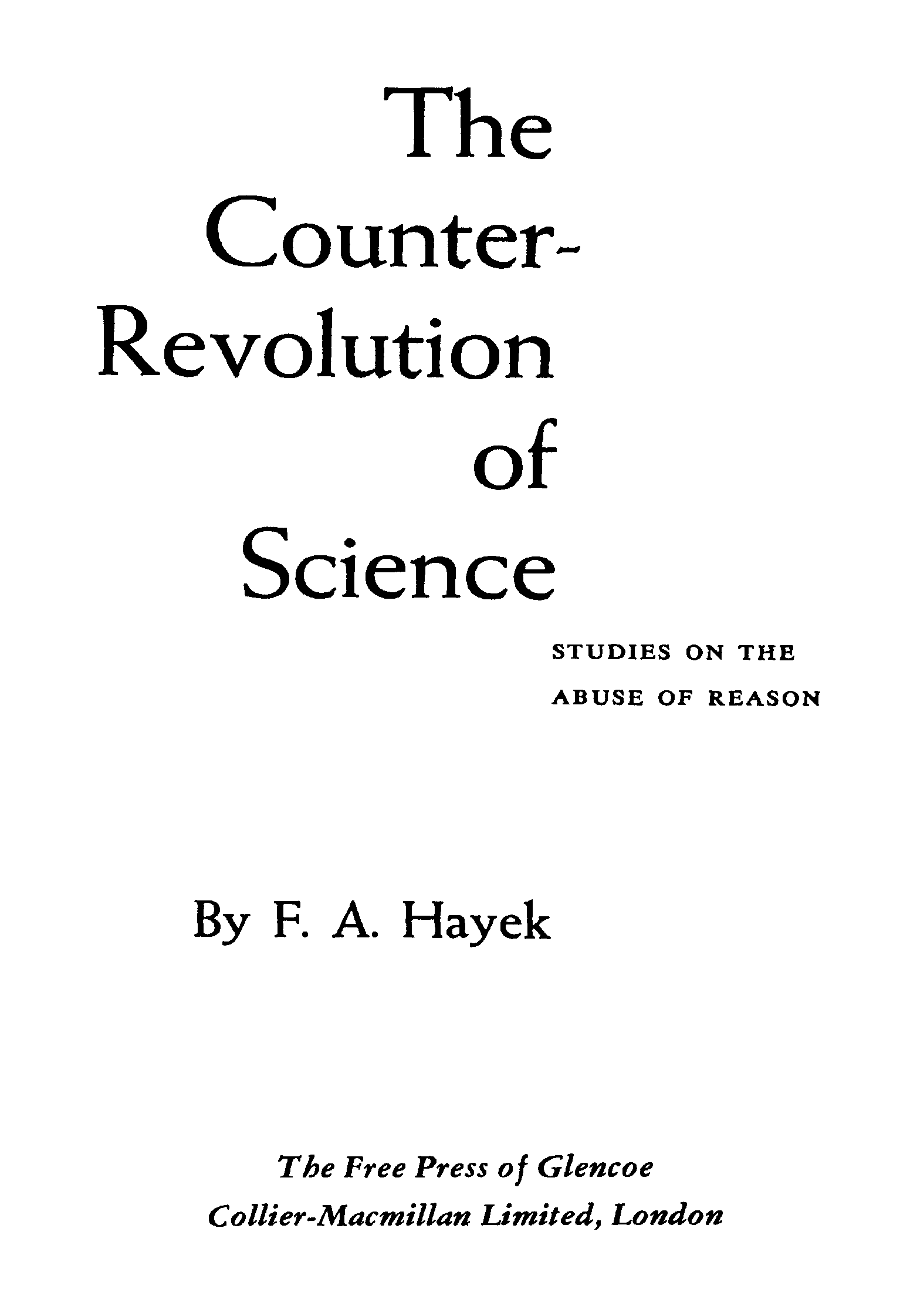 "The Counter-Revolution of Science: Studies on the Abuse of Reason" - читать интересную книгу автора (Hayek F.A. )