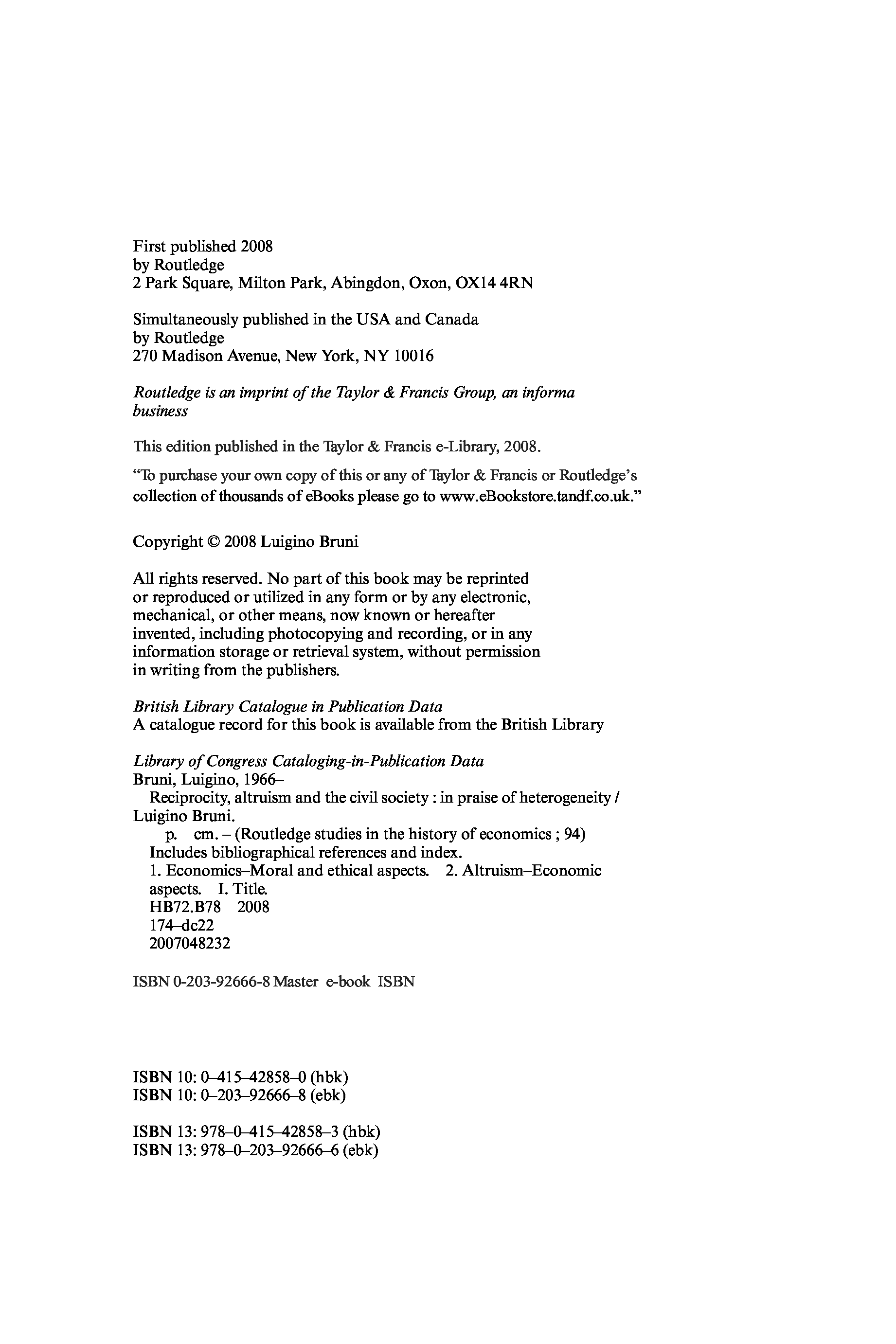 "Reciprocity, Altruism and the Civil Society: In praise of heterogeneity" - читать интересную книгу автора (Luigino Bruni)