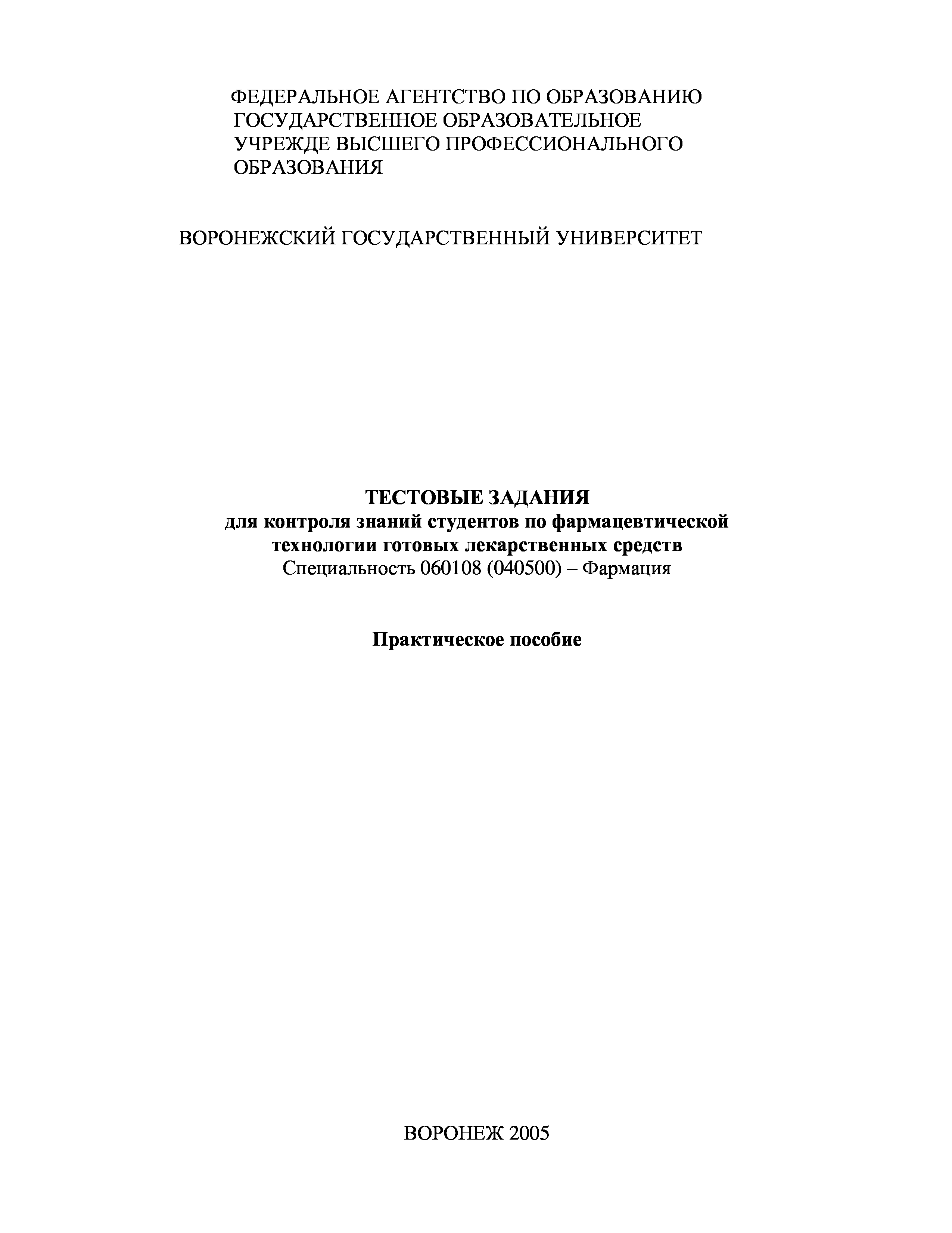 "Тестовые задания для контроля знаний студентов по фармацевтической технологии готовых лекарственных средств: Практическое пособие" - читать интересную книгу автора