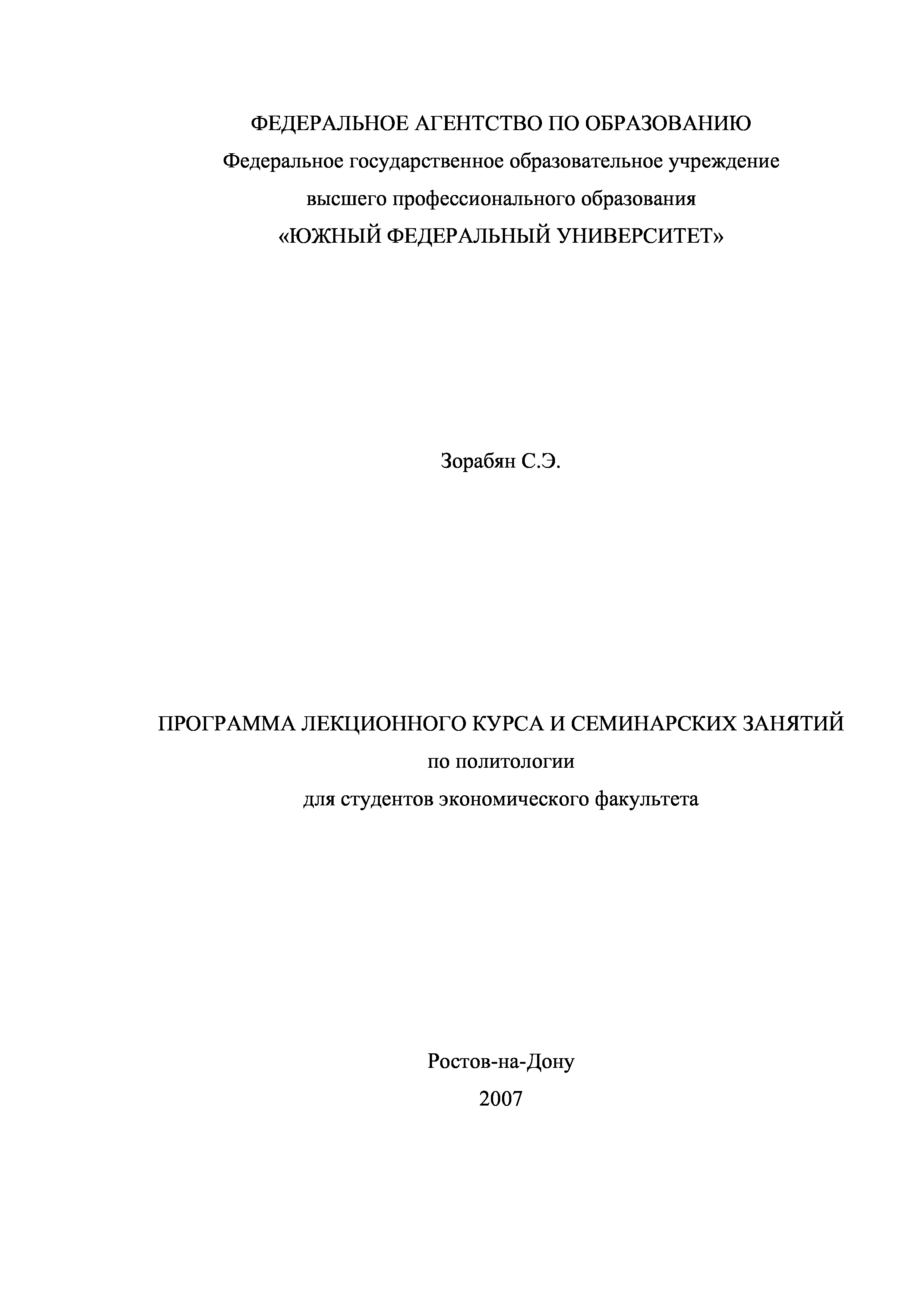 "Политология: Программа лекционного курса и семинарских занятий для студентов экономического факультета" - читать интересную книгу автора