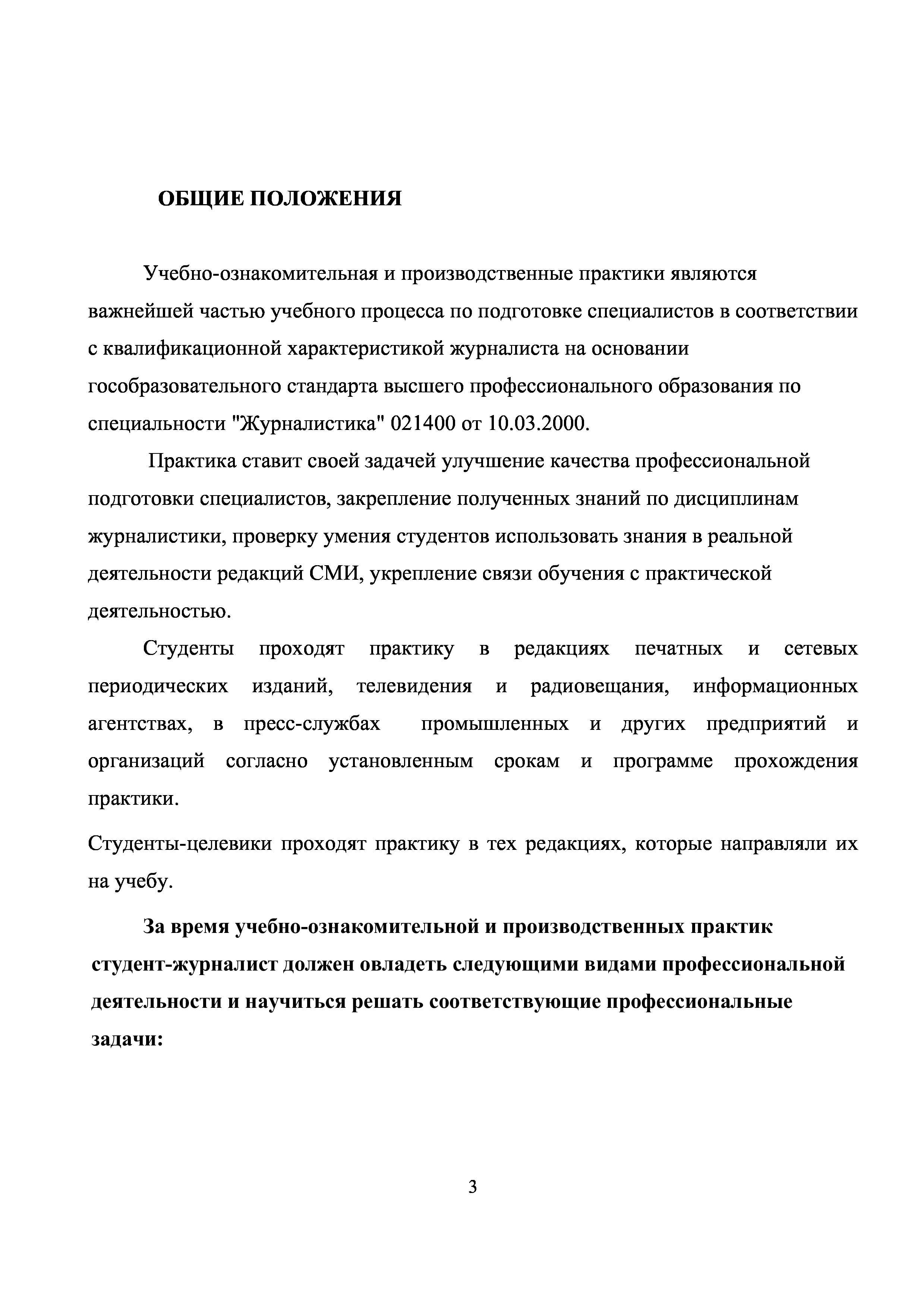 "Программа учебно-ознакомительной и производственных практик студентов отделения журналистики" - читать интересную книгу автора (Мицкевич И.В.)
