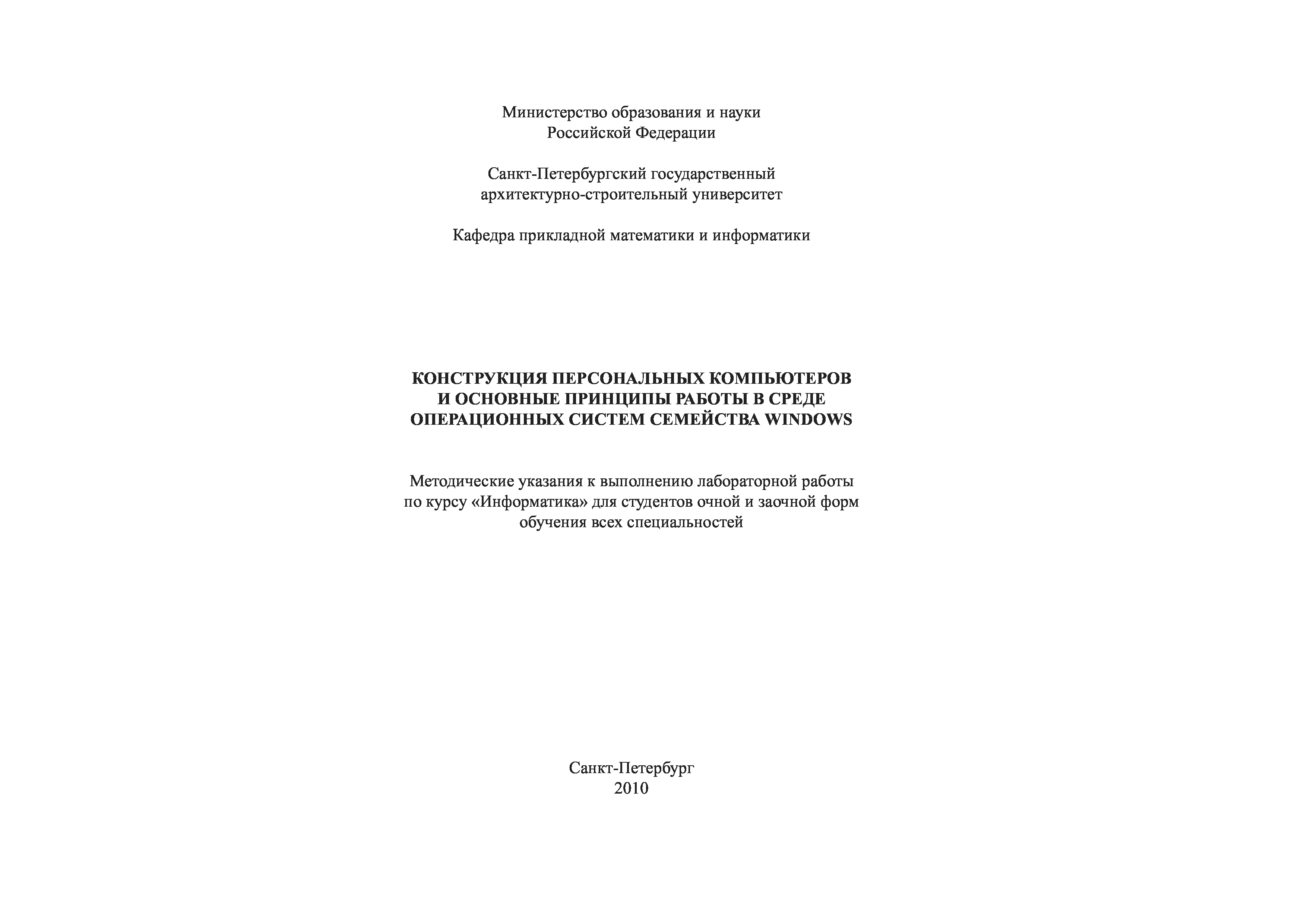 "Конструкция персональных компьютеров и основные принципы работы в среде операционных систем семейства Windows: Методические указания к выполнению лабораторной работы по курсу ''Информатика''" - читать интересную книгу автора (Любимов Е.Б., Шацкова М.В.)