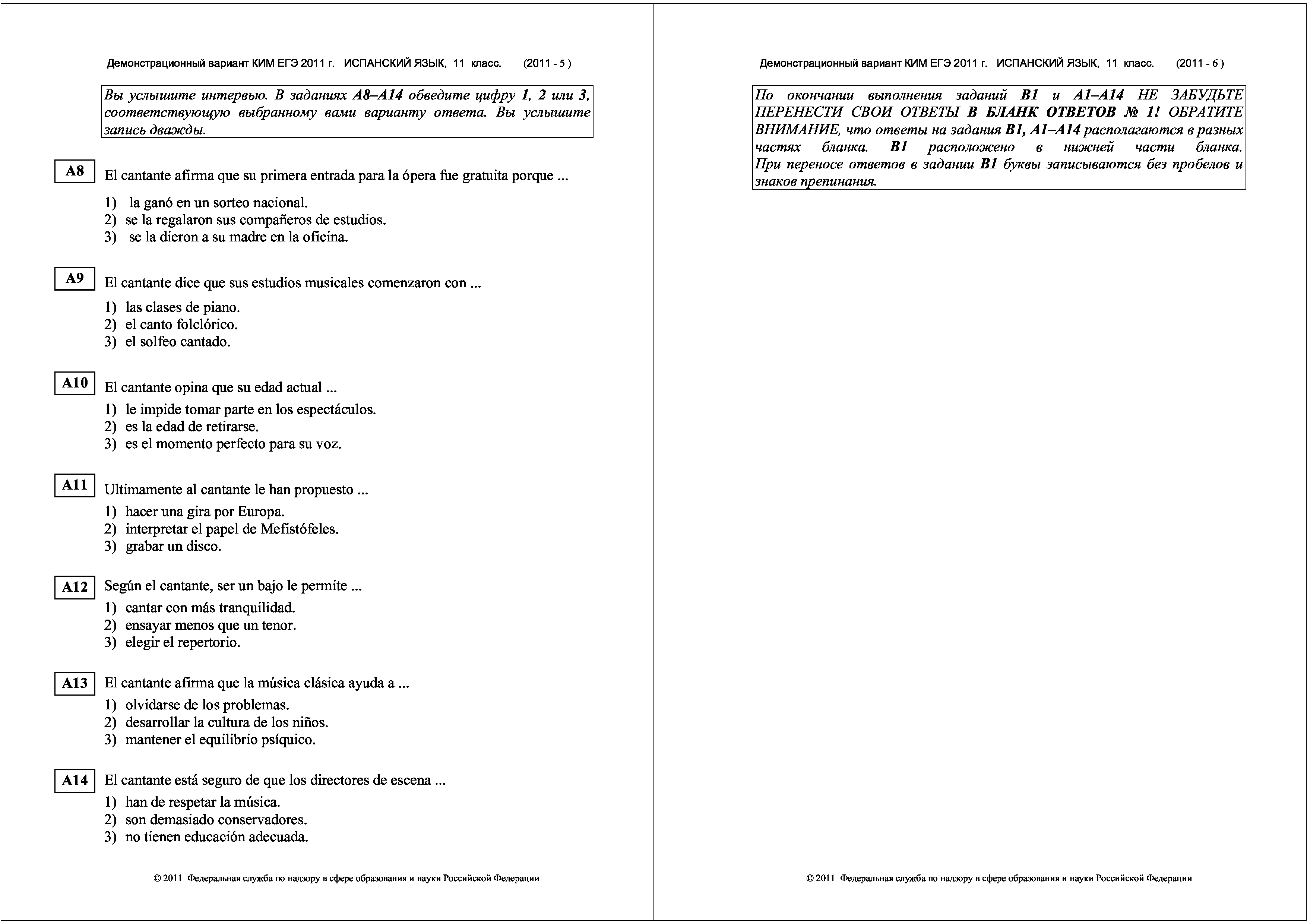 "Демонстрационный вариант ЕГЭ 2011 г. Испанский язык" - читать интересную книгу автора