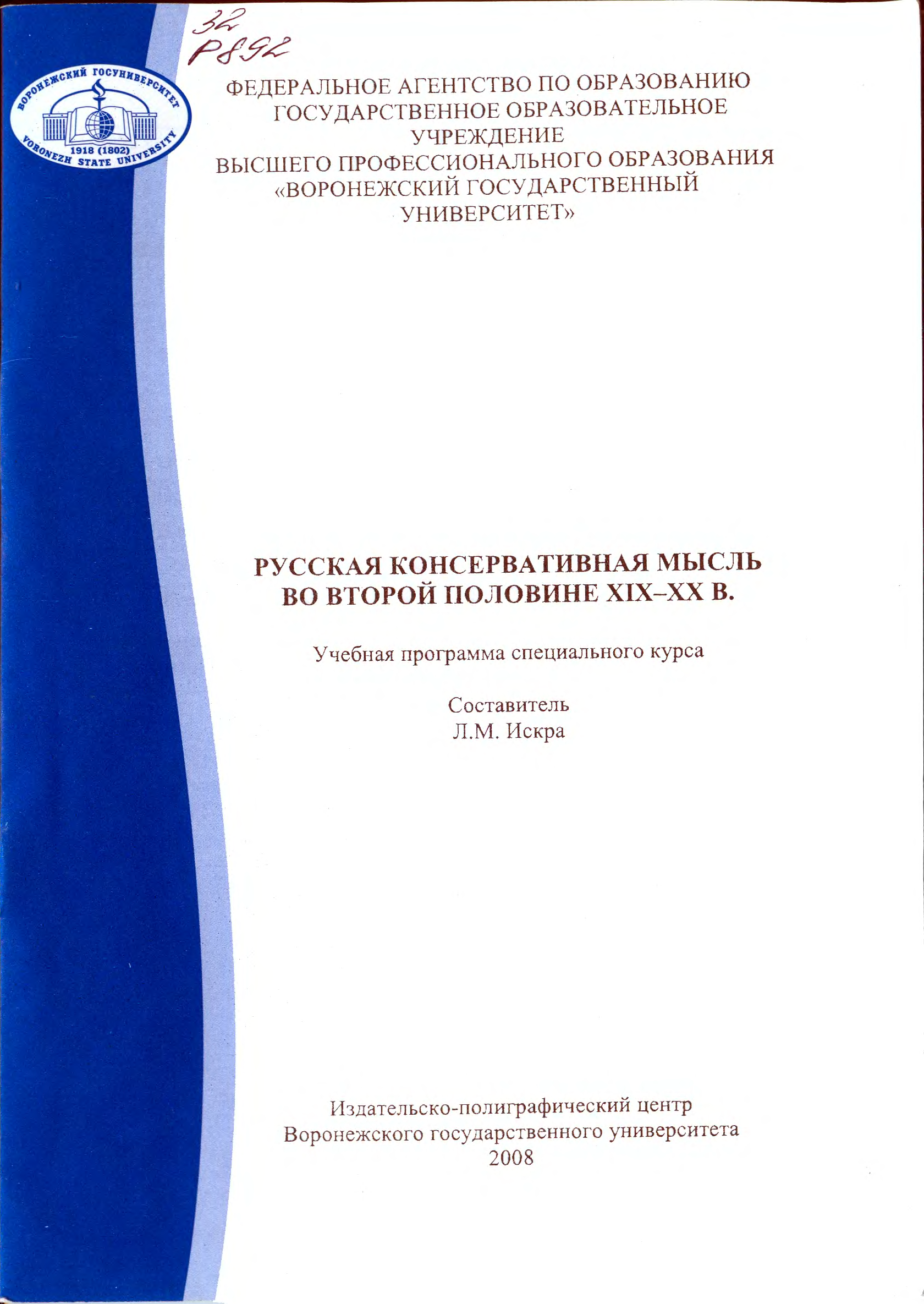 "Русская консервативная мысль во второй половине XIX-XX в.: Учебная программа специального курса" - читать интересную книгу автора