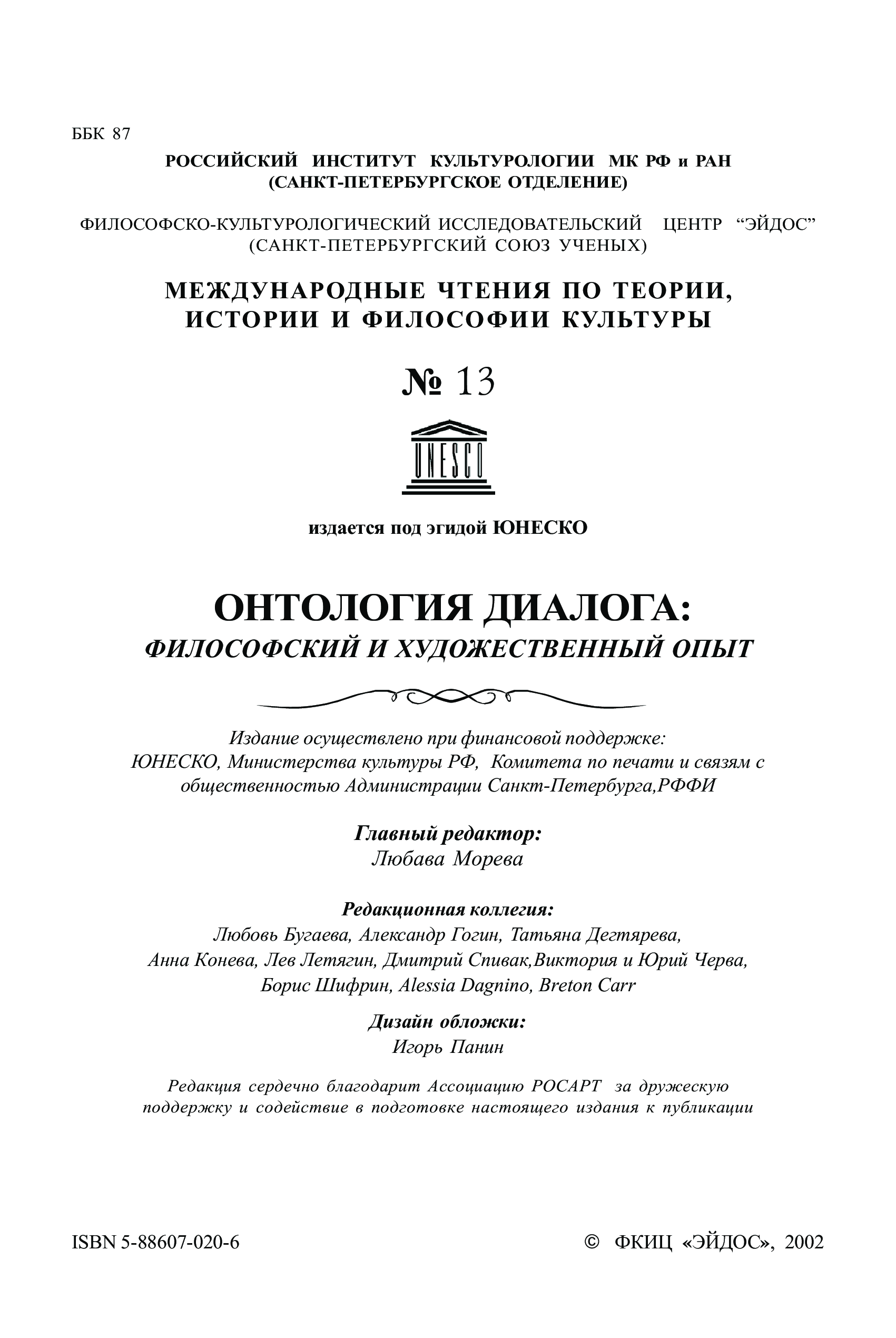 "Онтология диалога: философский и художественный опыт: Международные чтения по теории, истории и философии культуры. Выпуск 13" - читать интересную книгу автора