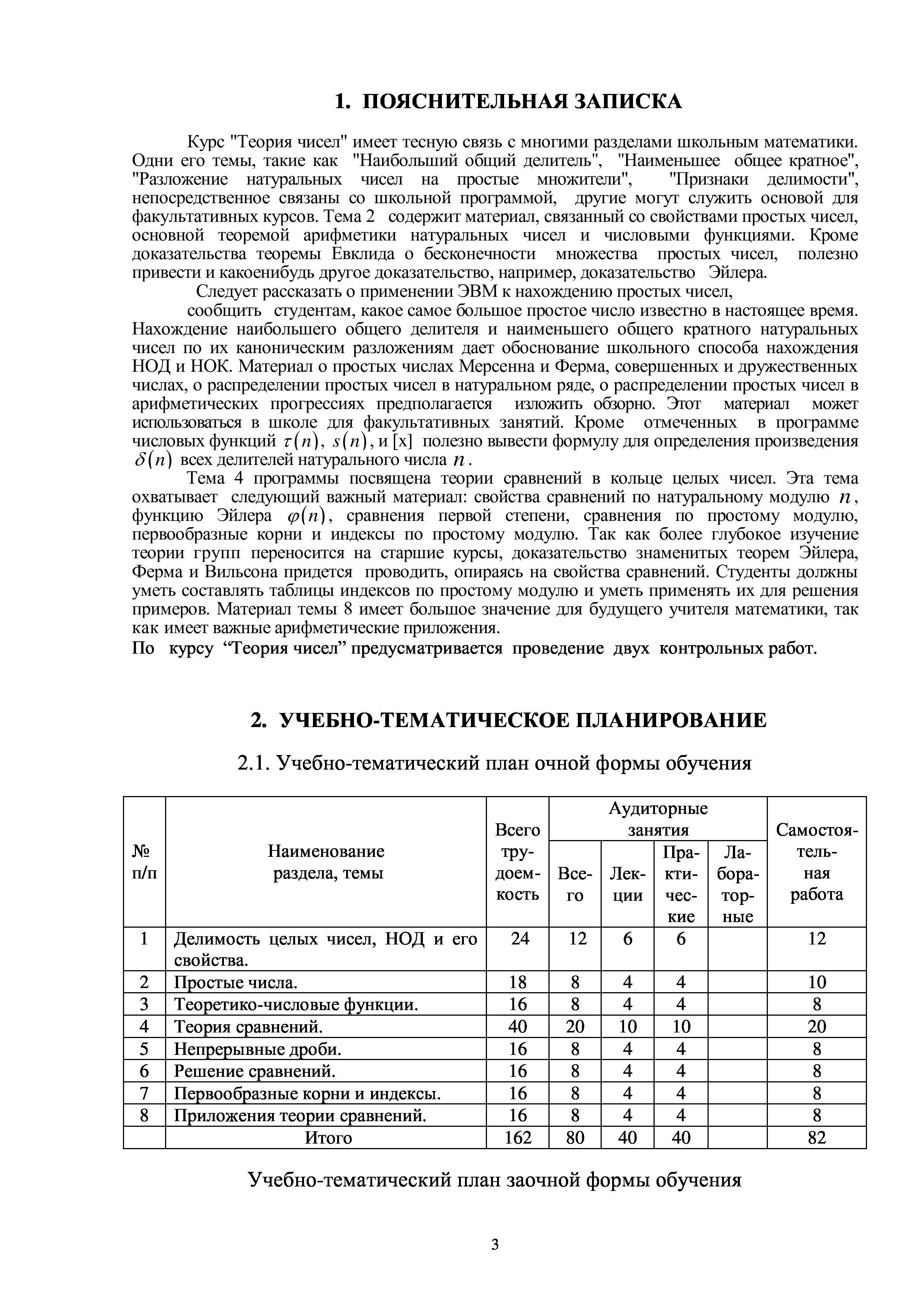 "Теория чисел: Рабочая учебная программа дисциплины" - читать интересную книгу автора