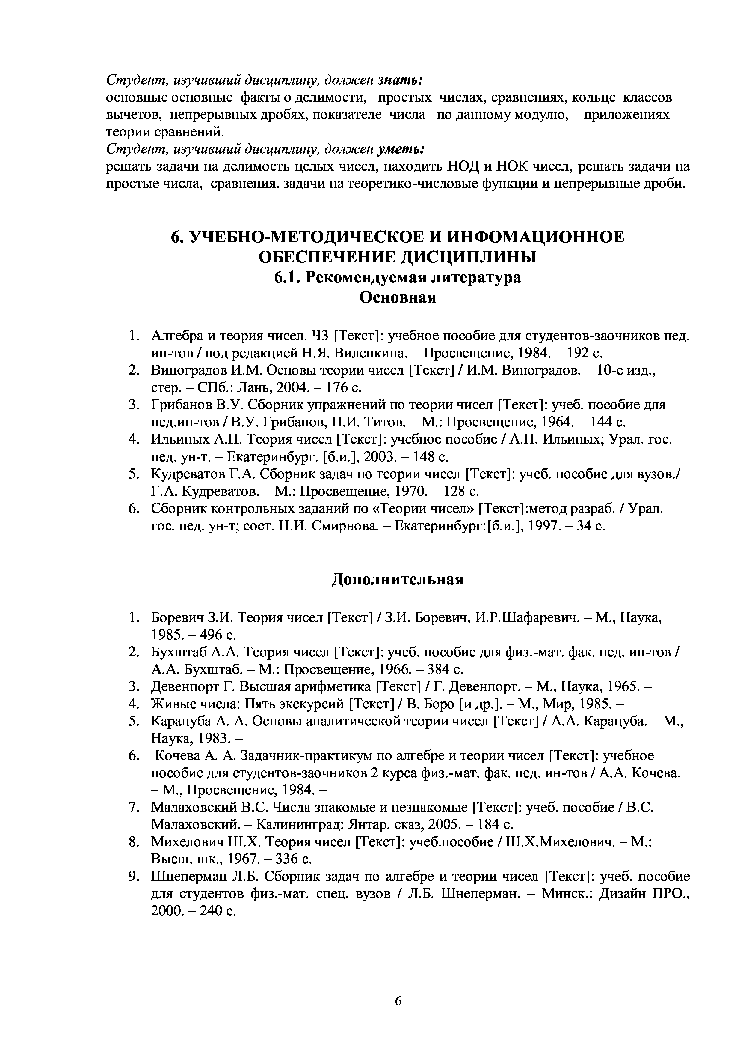 "Теория чисел: Рабочая учебная программа дисциплины" - читать интересную книгу автора