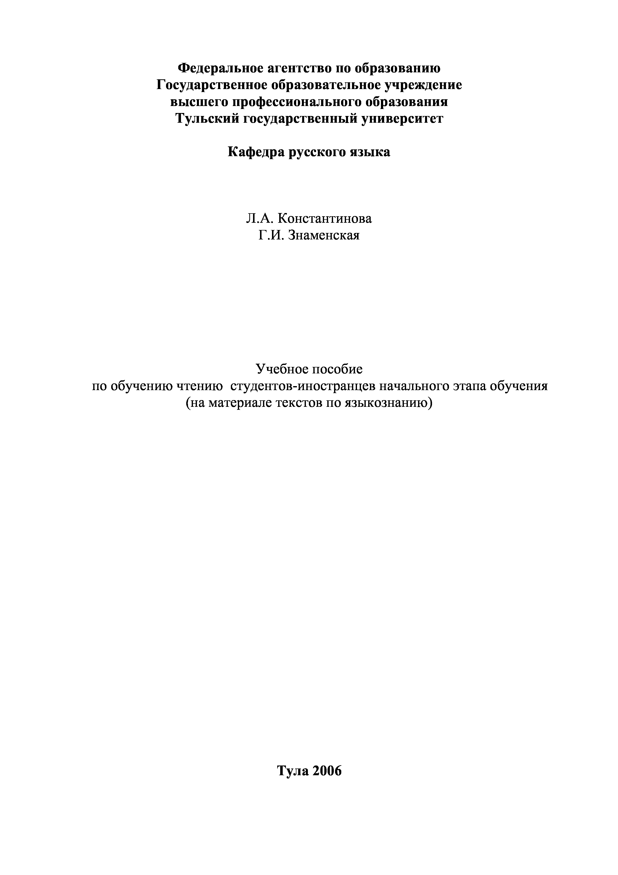 "Учебное пособие по обучению чтению студентов-иностранцев начального этапа обучения (на материале текстов по языкознанию)" - читать интересную книгу автора (Константинова Л.А., Знаменская Г.И.)