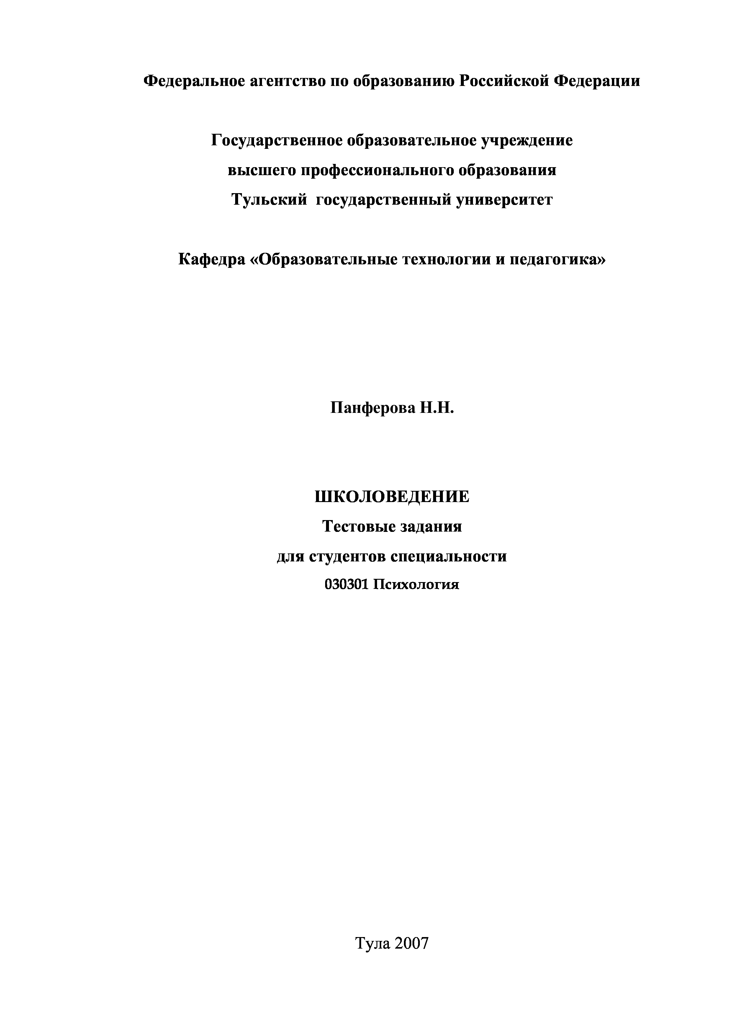 "Школоведение: Тестовые задания для студентов специальности ''Психология''" - читать интересную книгу автора