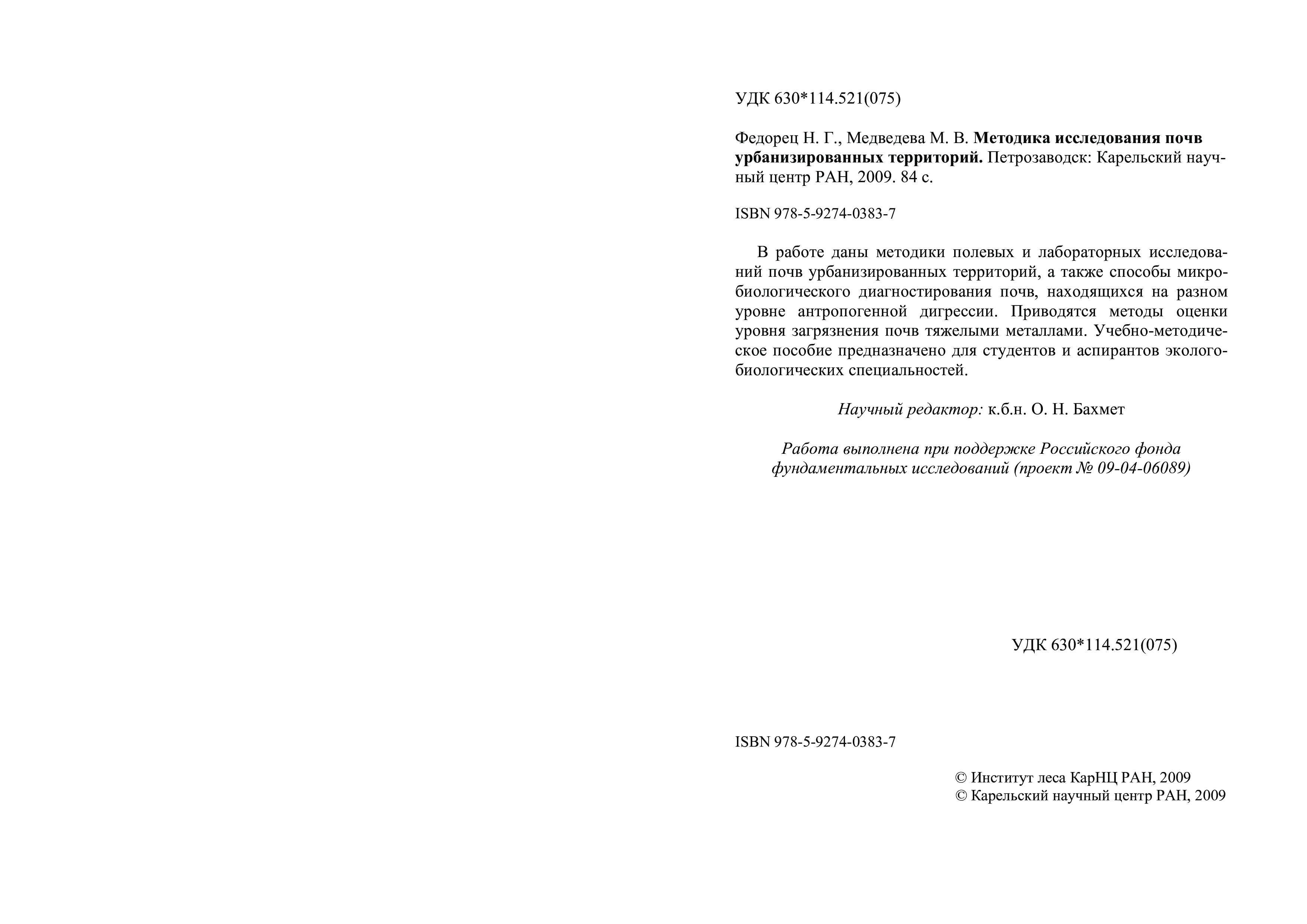 "Методика исследования почв урбанизированных территорий: Учебно-методическое пособие" - читать интересную книгу автора (Федорец Н.Г., Медведева М.В.)