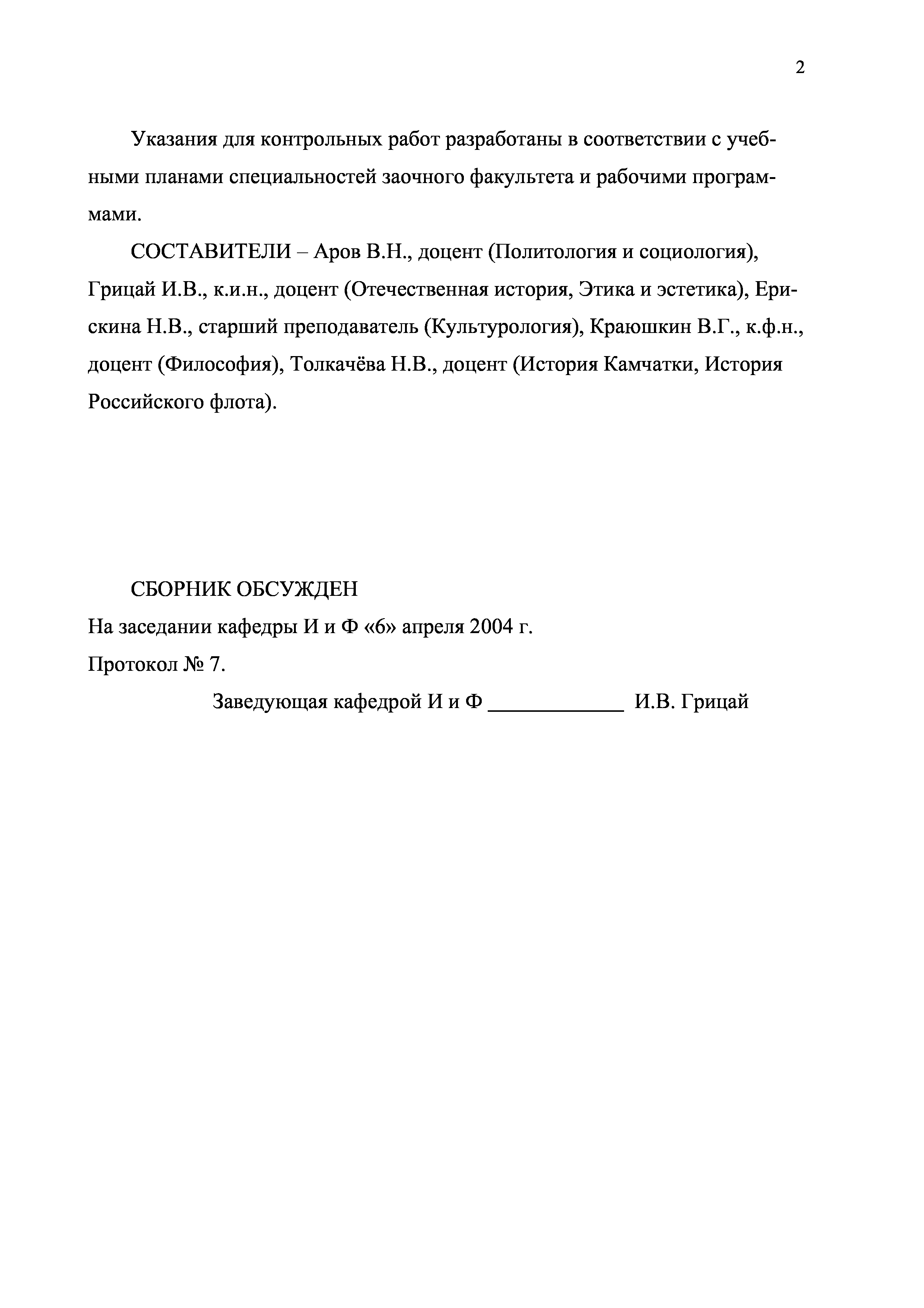 "Философия. Отечественная история. Культурология. Политология и социология. История Камчатки. История Российского флота. Этика и эстетика: Сборник методических указаний по выполнению контрольных работ" - читать интересную книгу автора (Аров В.Н., Грицай И.В., Ерискина Н.В., Краюшкин...)