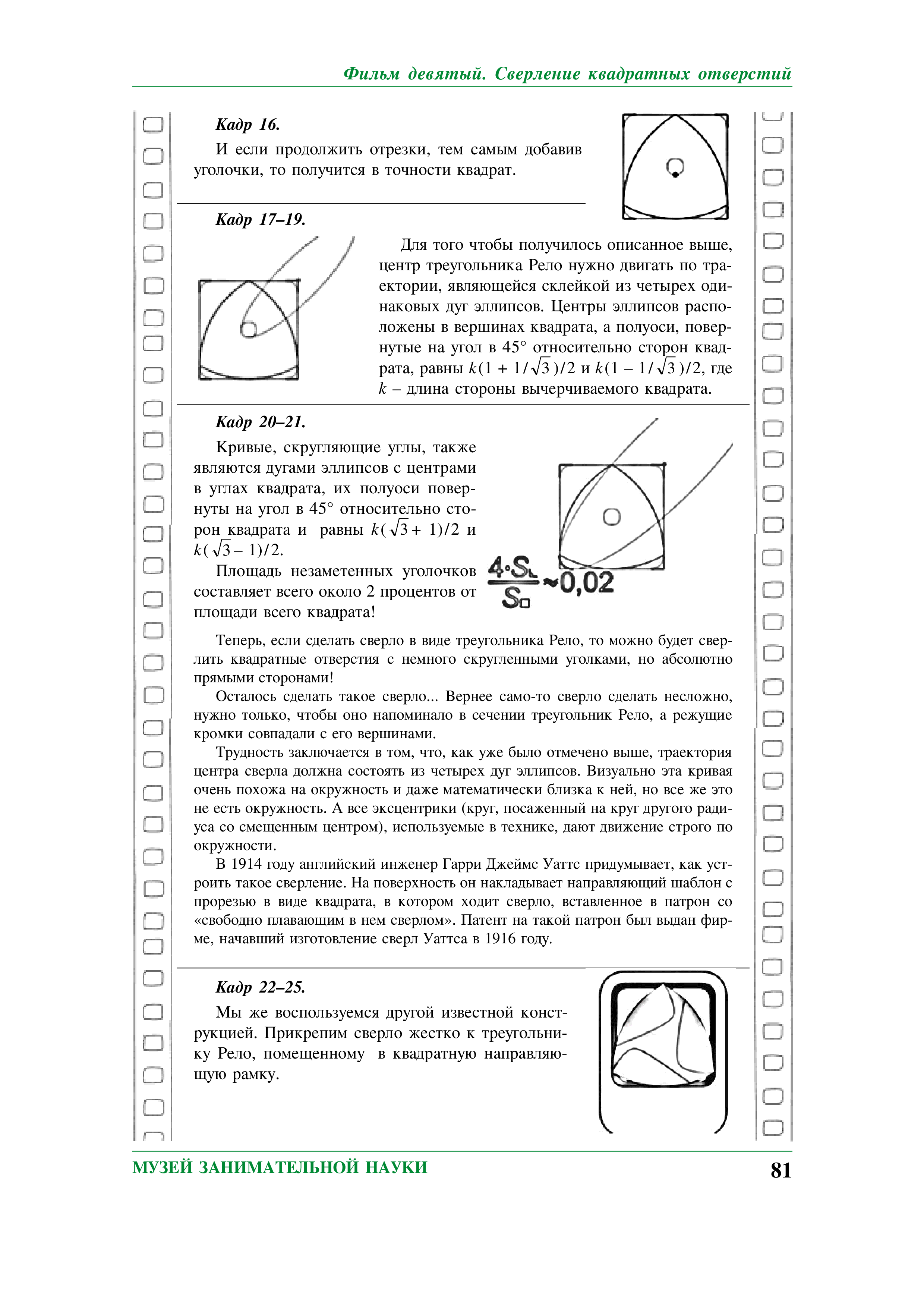 "Компьютерные фильмы о занимательных и нерешенных проблемах математики. Фильм Девятый. Сверление квадратных отверстий" - читать интересную книгу автора