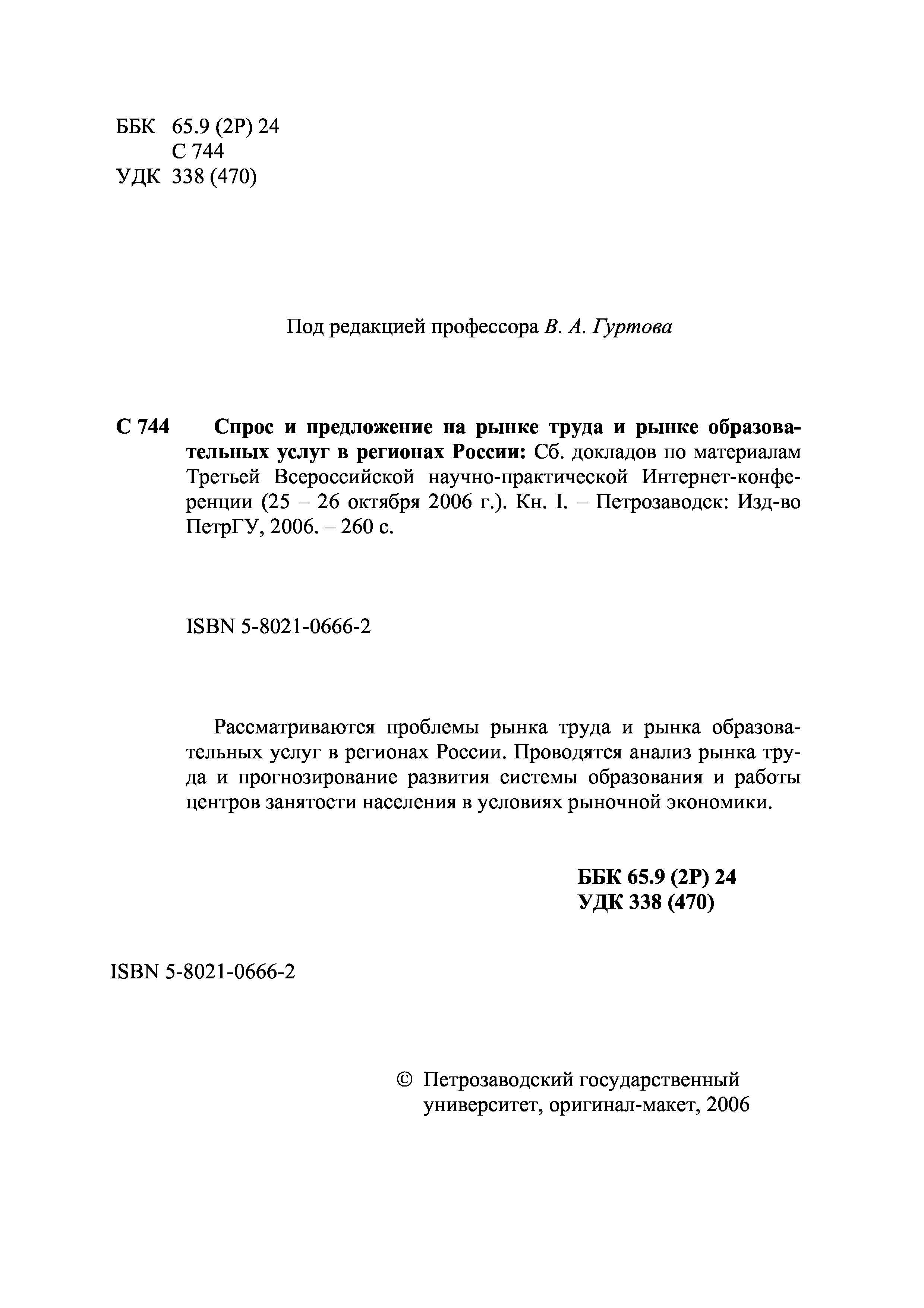 "Спрос и предложение на рынке труда и рынке образовательных услуг в регионах России (2006): Сборник докладов. Книга I" - читать интересную книгу автора