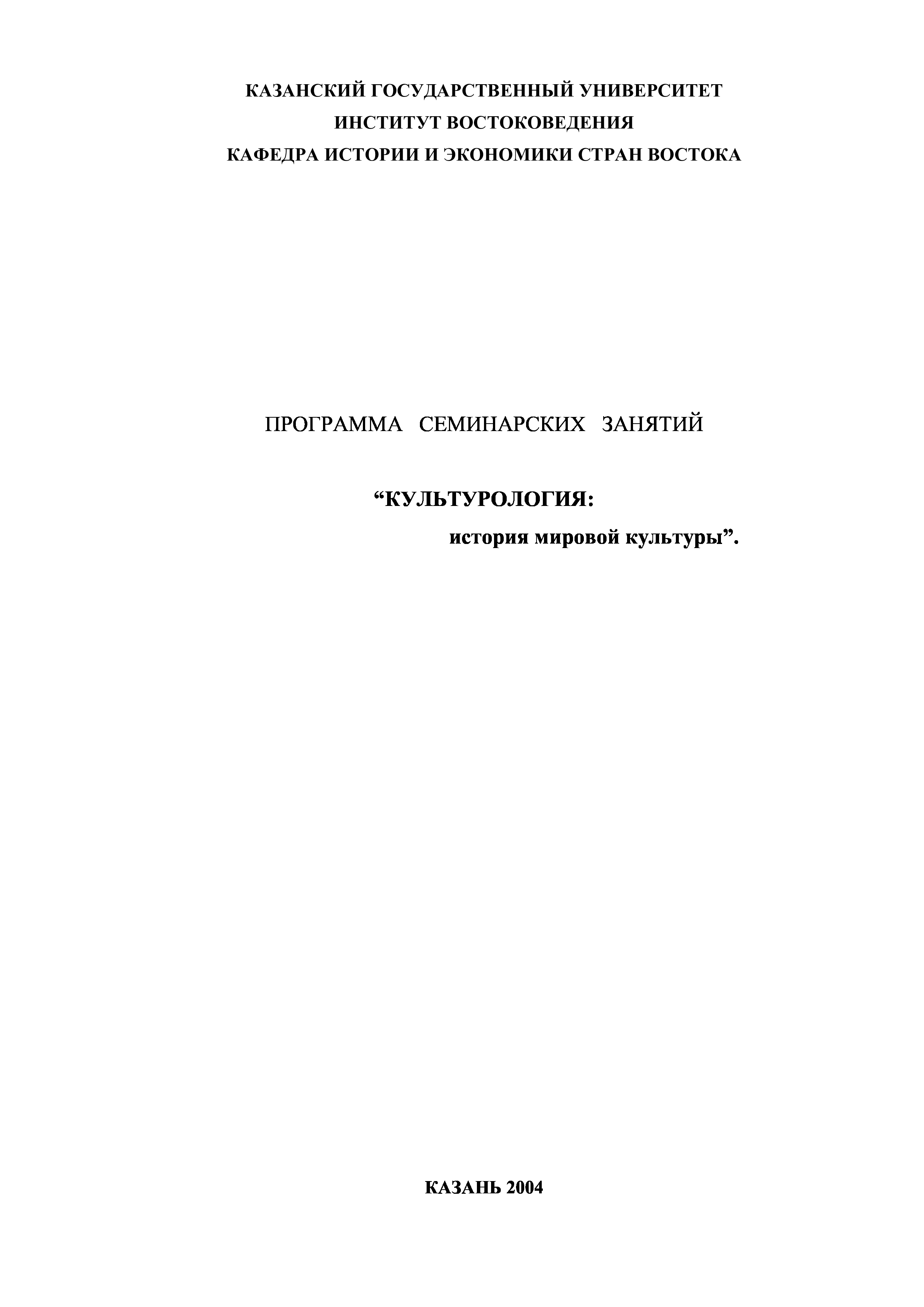 "Культурология: история мировой культуры. Программа семинарских занятий" - читать интересную книгу автора