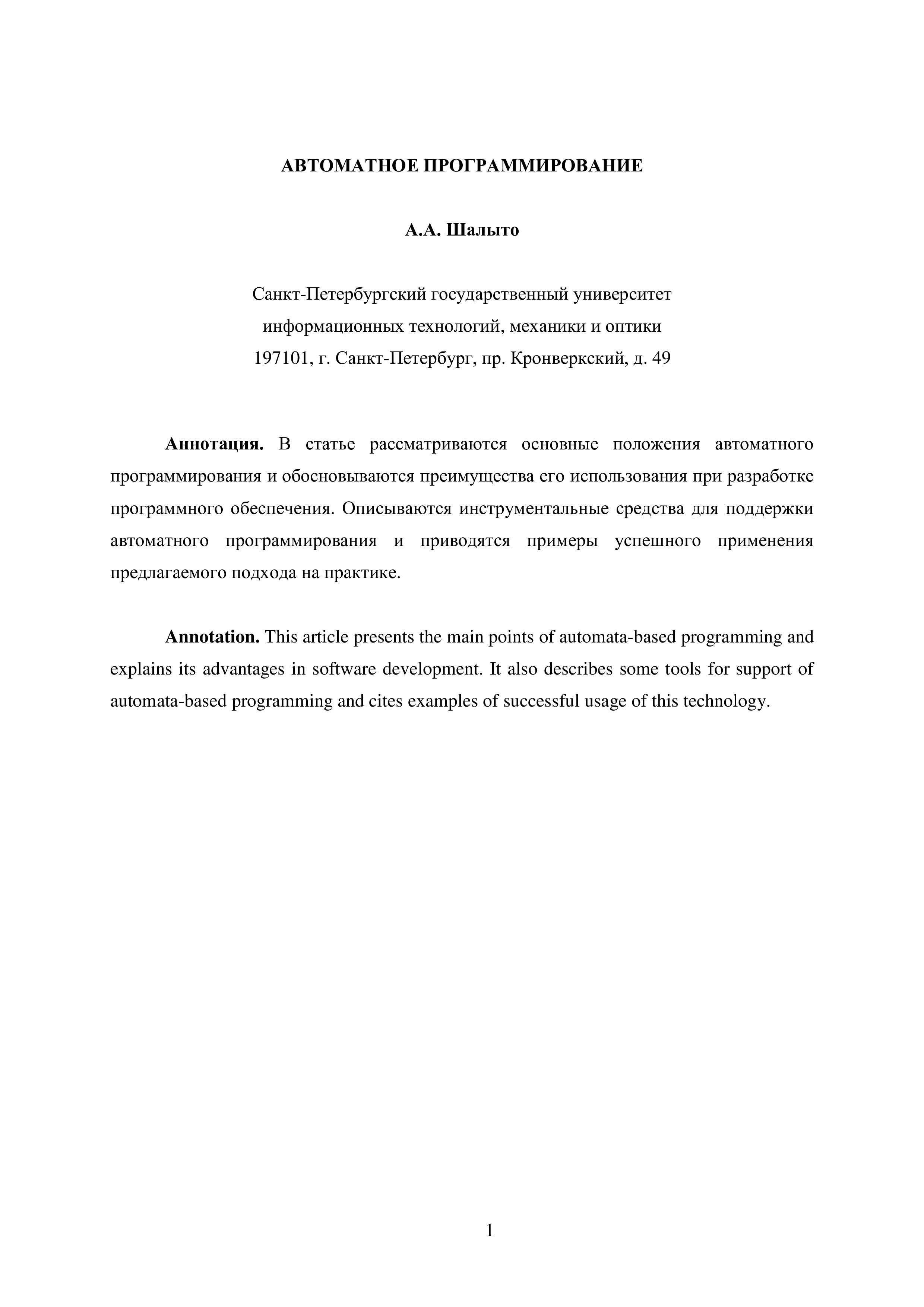 (Шалыто А.А.)