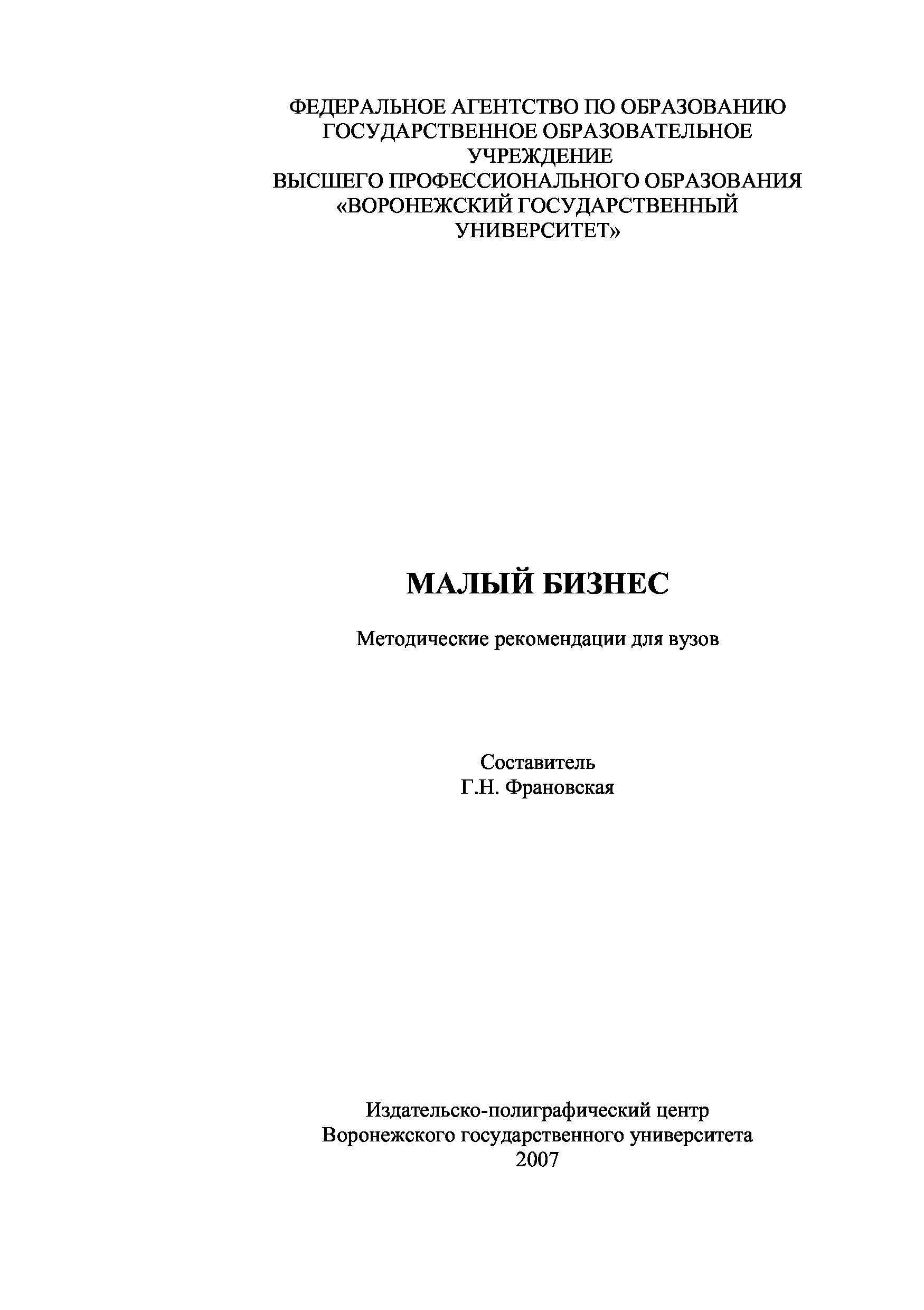 "Малый бизнес: Методические рекомендации" - читать интересную книгу автора (Франовская Г.Н.)