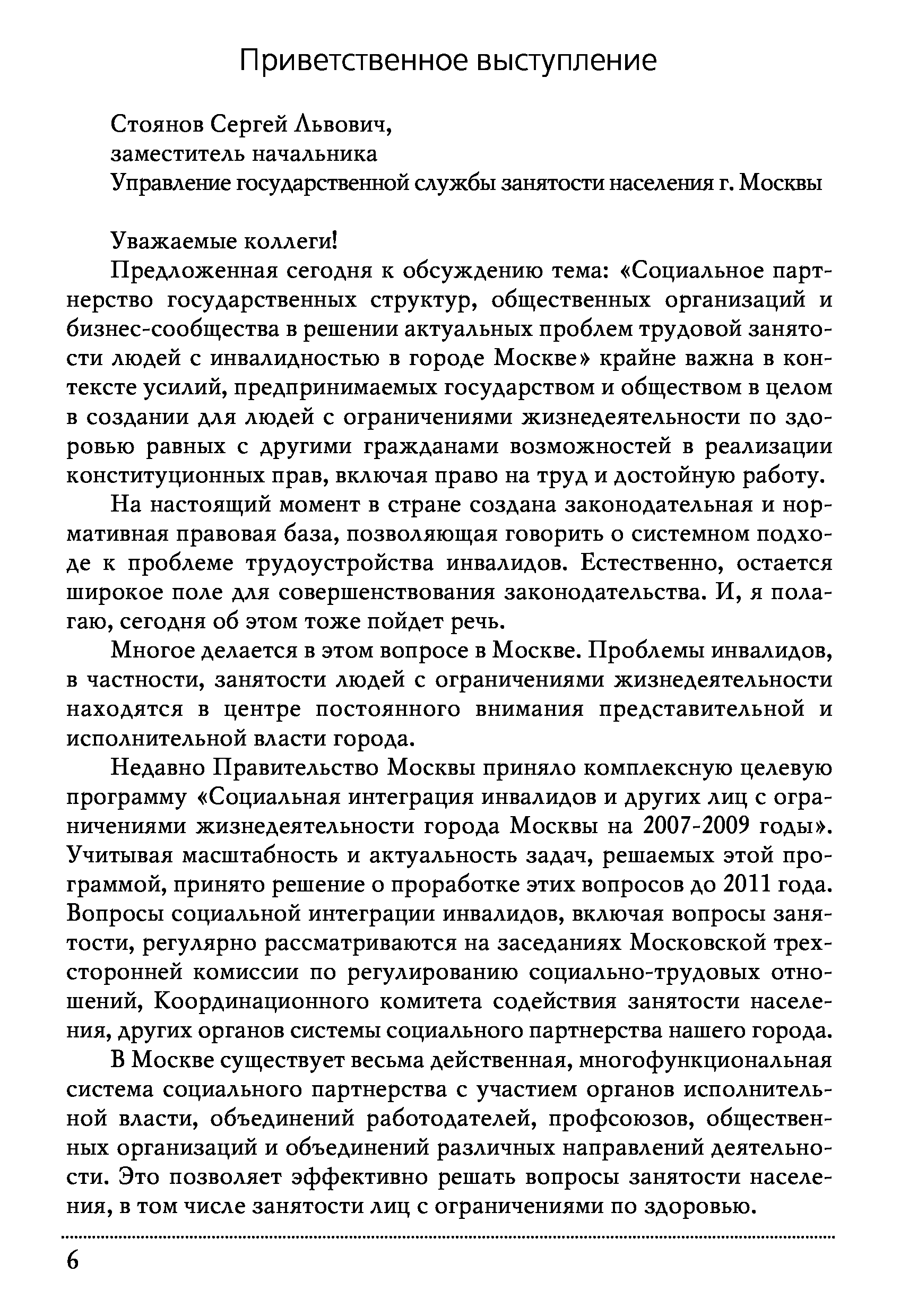 "Социальное партнeрство государственных структур, общественных объединений и бизнес-сообщества в решении актуальных проблем трудовой занятости людей с инвалидностью в городе Москве: Сборник материалов научно-практической конференции" - читать интересную книгу автора (Авторы-составители: Новиков М.Л., Бондаренко...) |