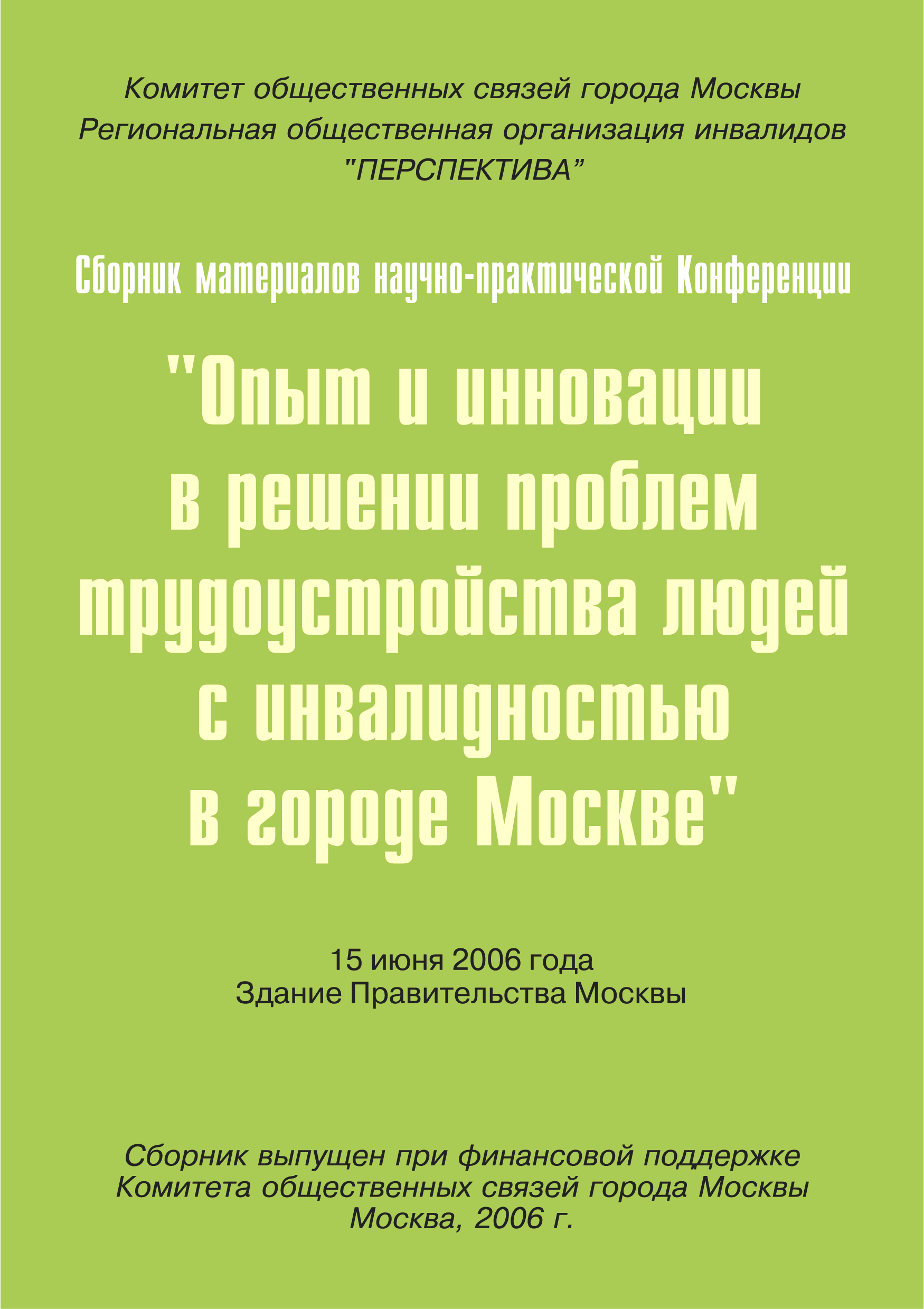 "Опыт и инновации в решении проблем трудоустройства людей с инвалидностью в городе Москве: Сборник материалов научно-практической конференции" - читать интересную книгу автора