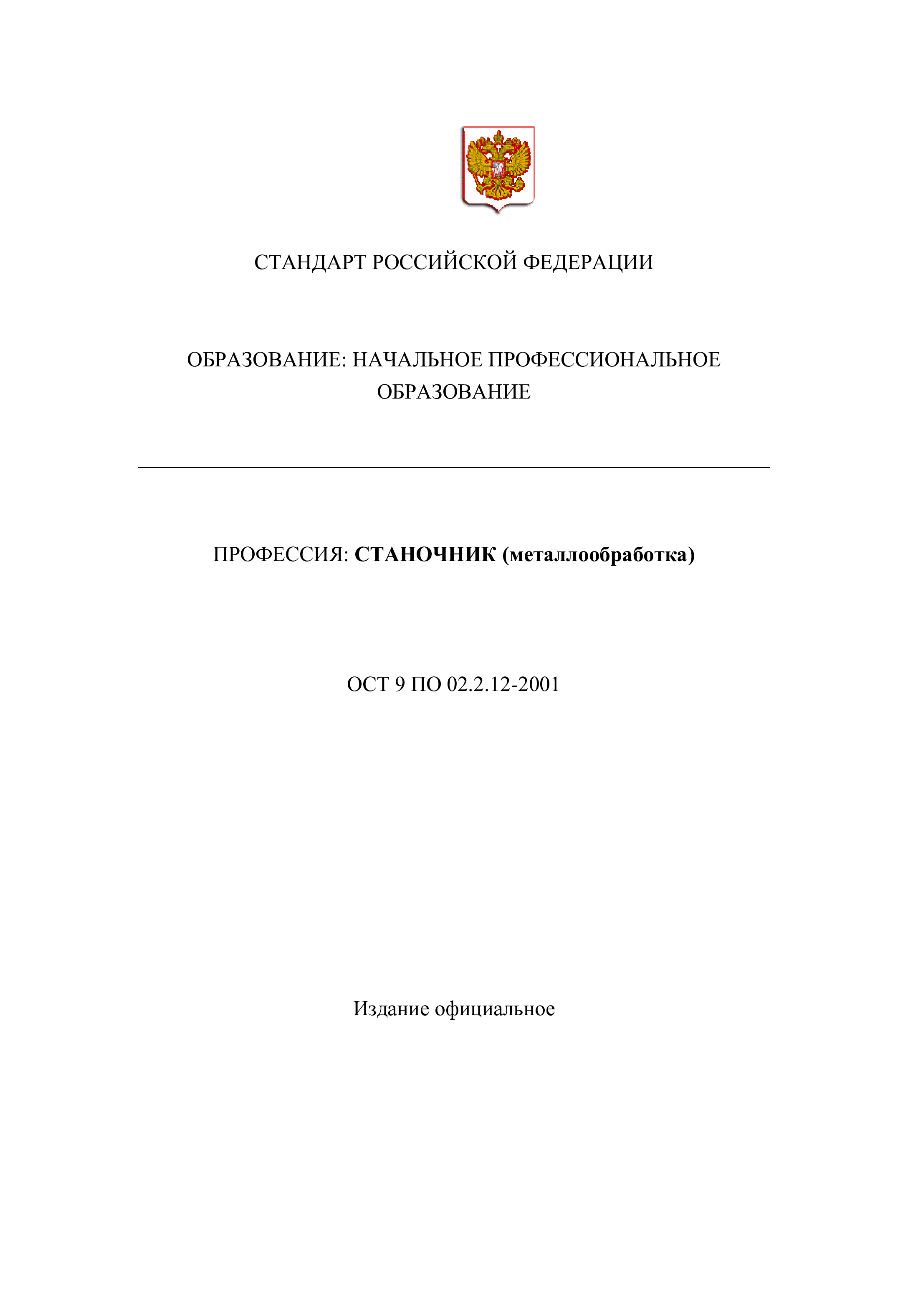 "Профессия ''Станочник (металлообработка)''. Государственный образовательный стандарт начального профессионального образования" - читать интересную книгу автора