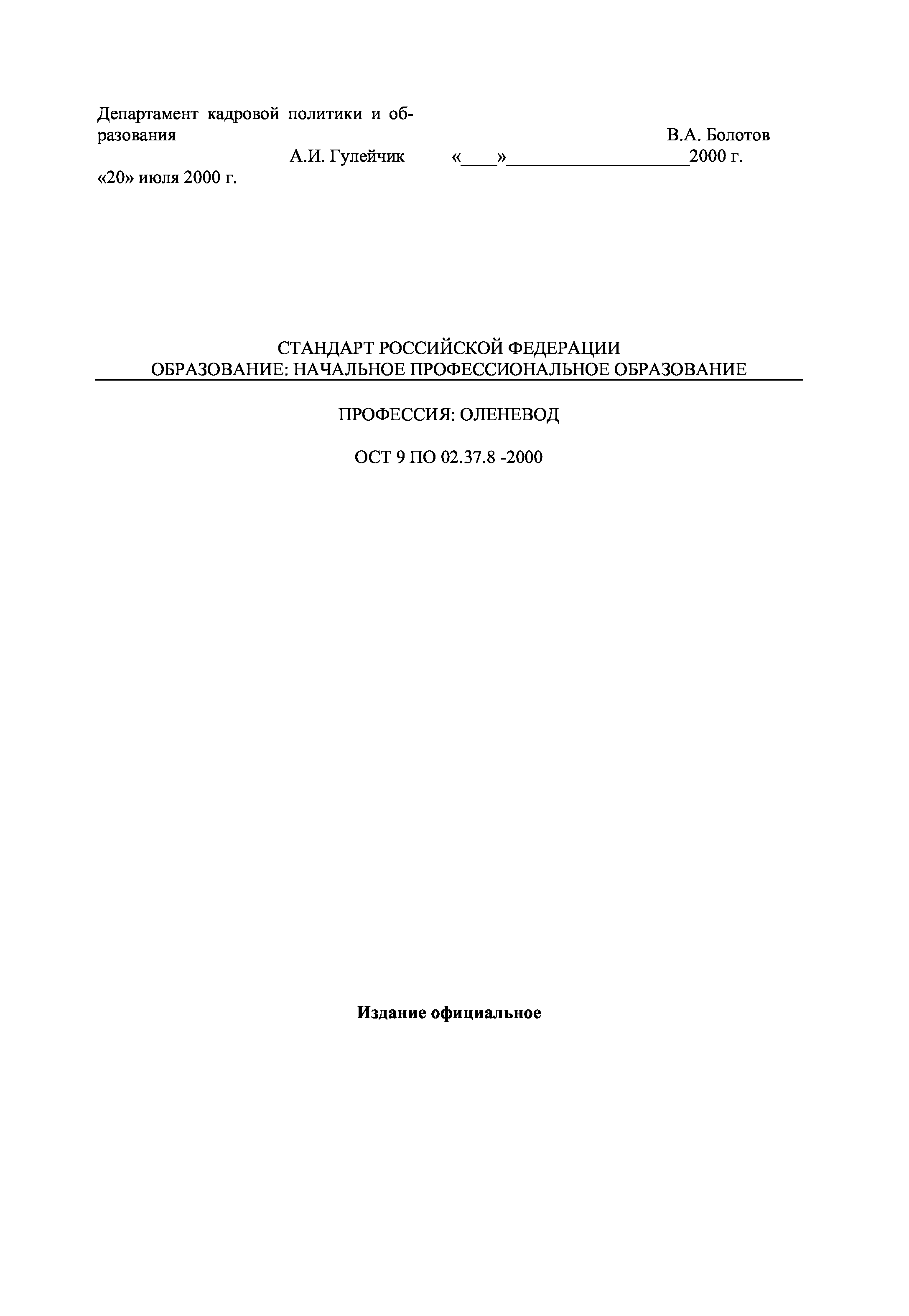 "Профессия ''Оленевод''. Государственный образовательный стандарт начального профессионального образования" - читать интересную книгу автора