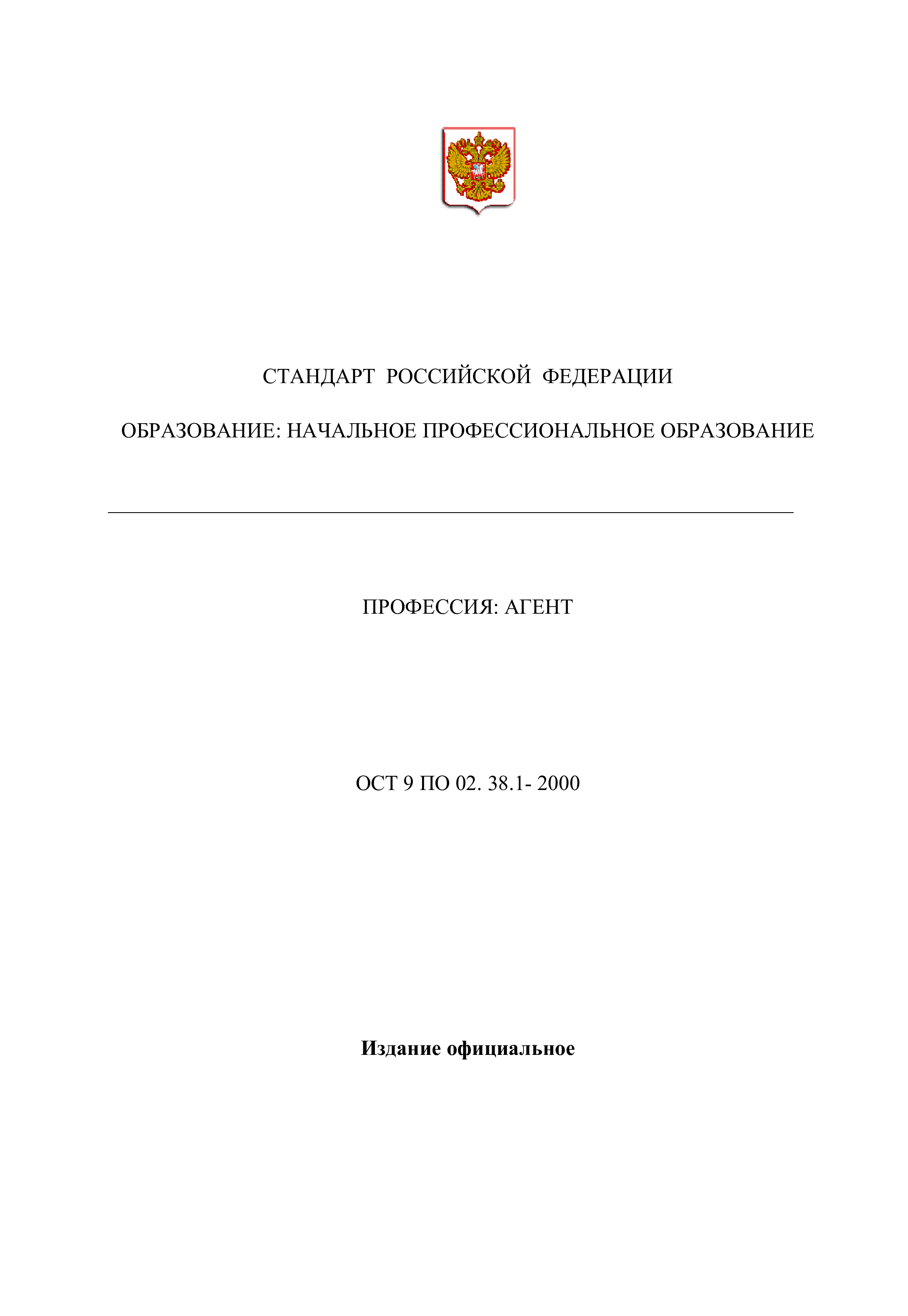"Профессия ''Агент''. Государственный образовательный стандарт начального профессионального образования" - читать интересную книгу автора