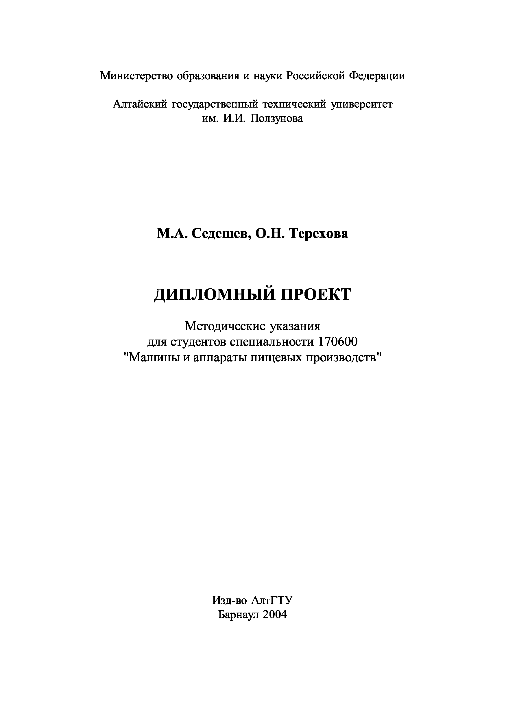 "Дипломный проект: Методические указания для студентов специальности 170600 ''Машины и аппараты пищевых производств''" - читать интересную книгу автора (Седешев М.А., Терехова О.Н.)