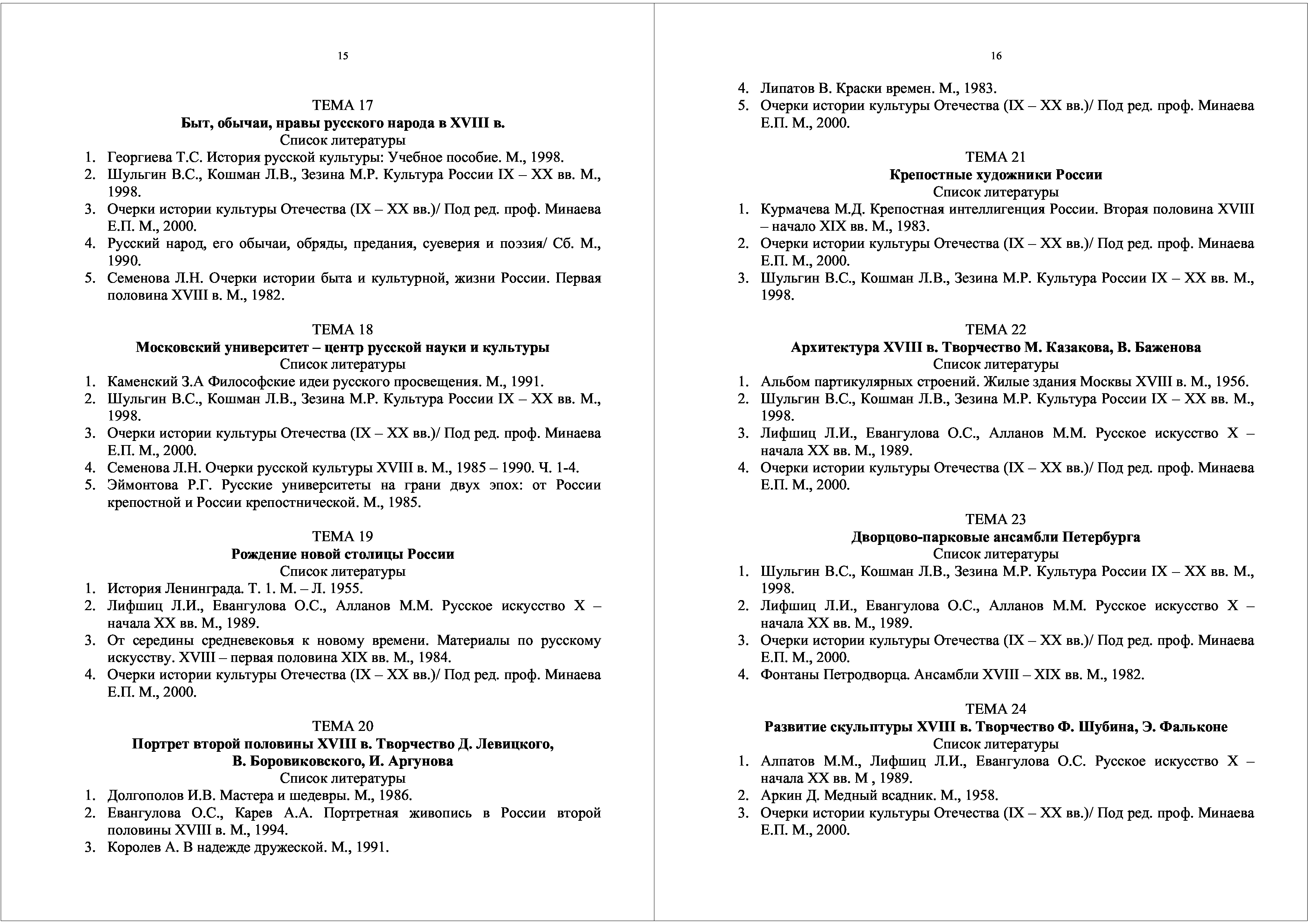 "Теория и история российской культуры: Программа, планы семинарских занятий, тематика контрольных (реферативных) работ по курсу ''Культурология''" - читать интересную книгу автора