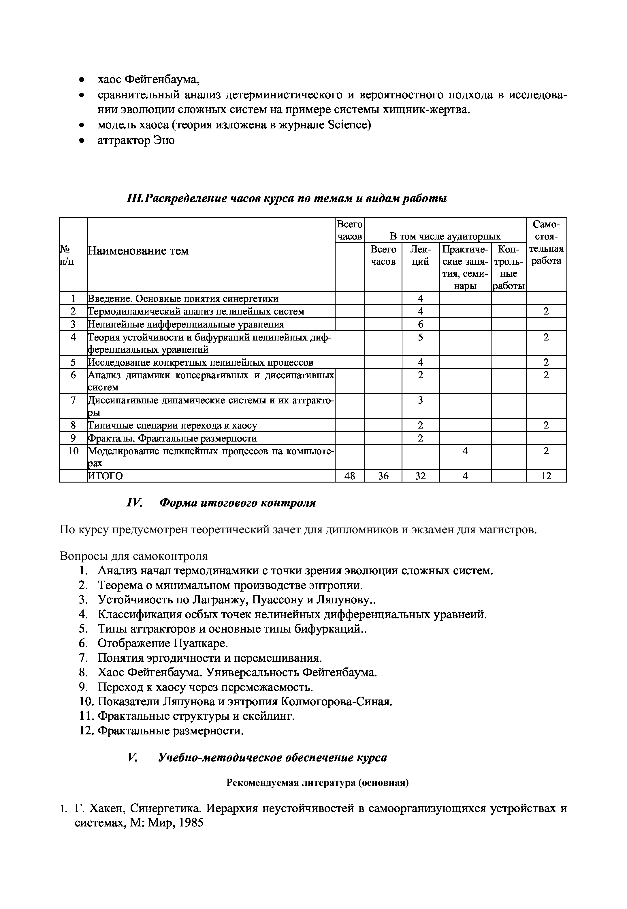 "Синергетика: Рабочая программа дисциплины" - читать интересную книгу автора