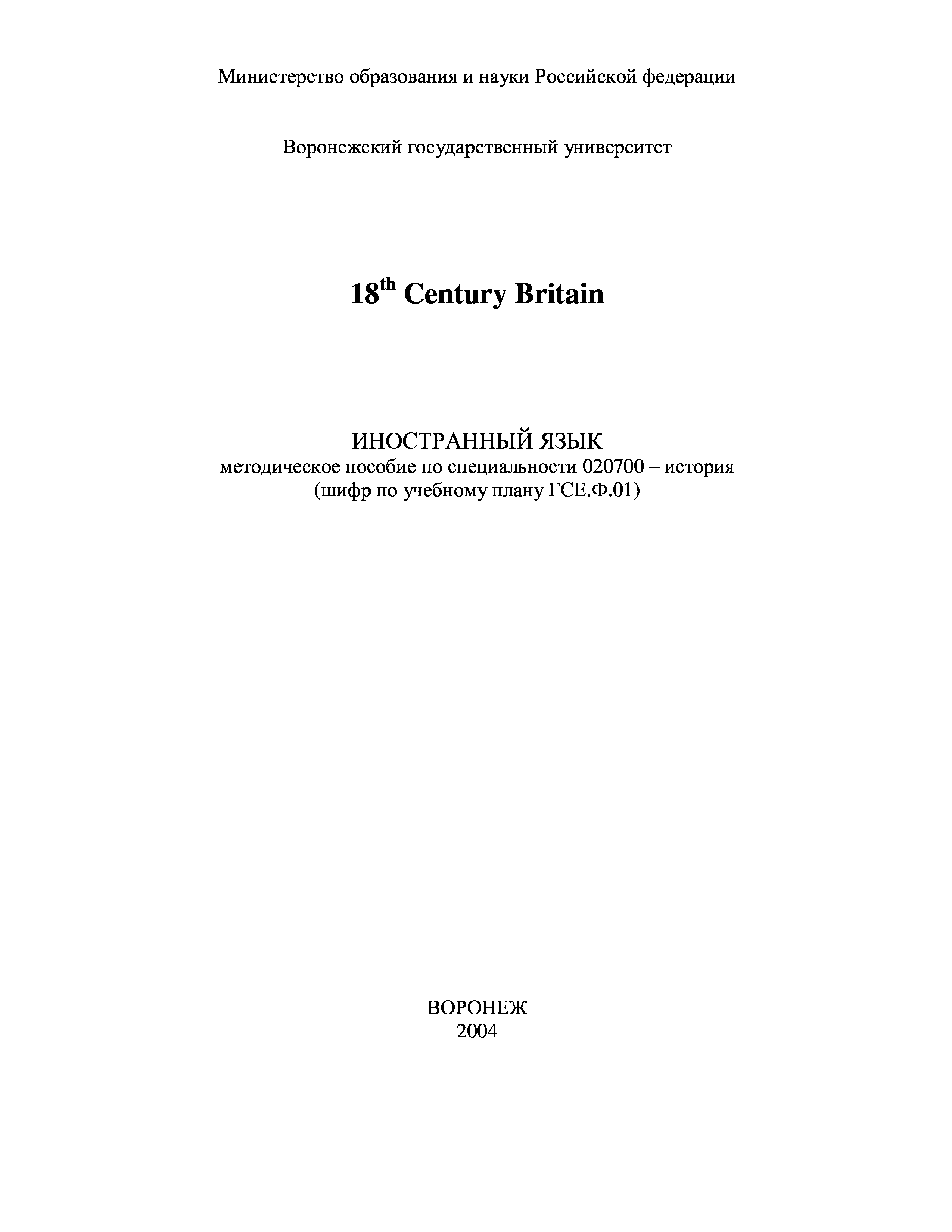 "18th Century Britain. Иностранный язык: Методическое пособие" - читать интересную книгу автора