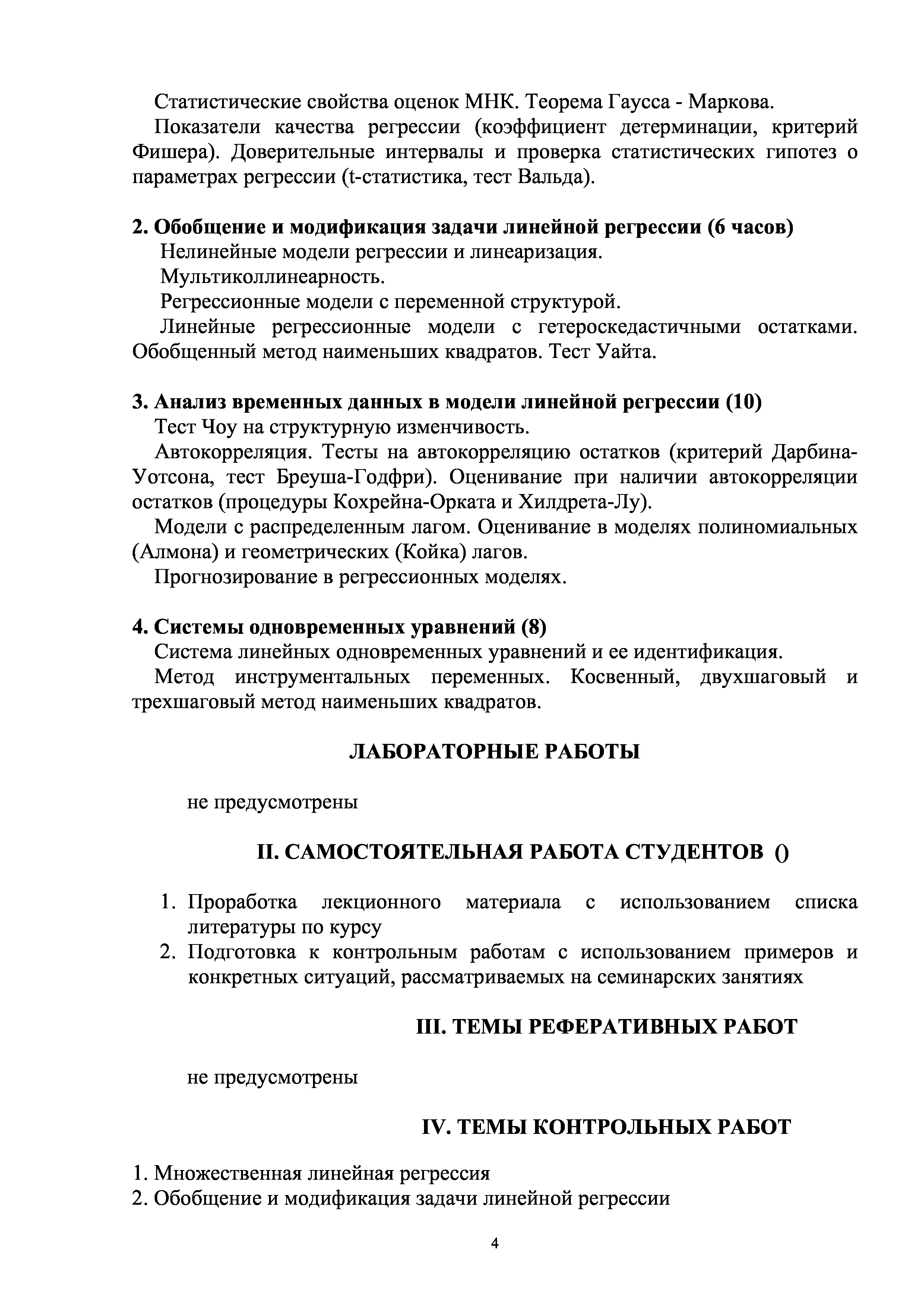 "Эконометрика: Рабочая программа дисциплины для специальности ''Математические методы в экономике''" - читать интересную книгу автора
